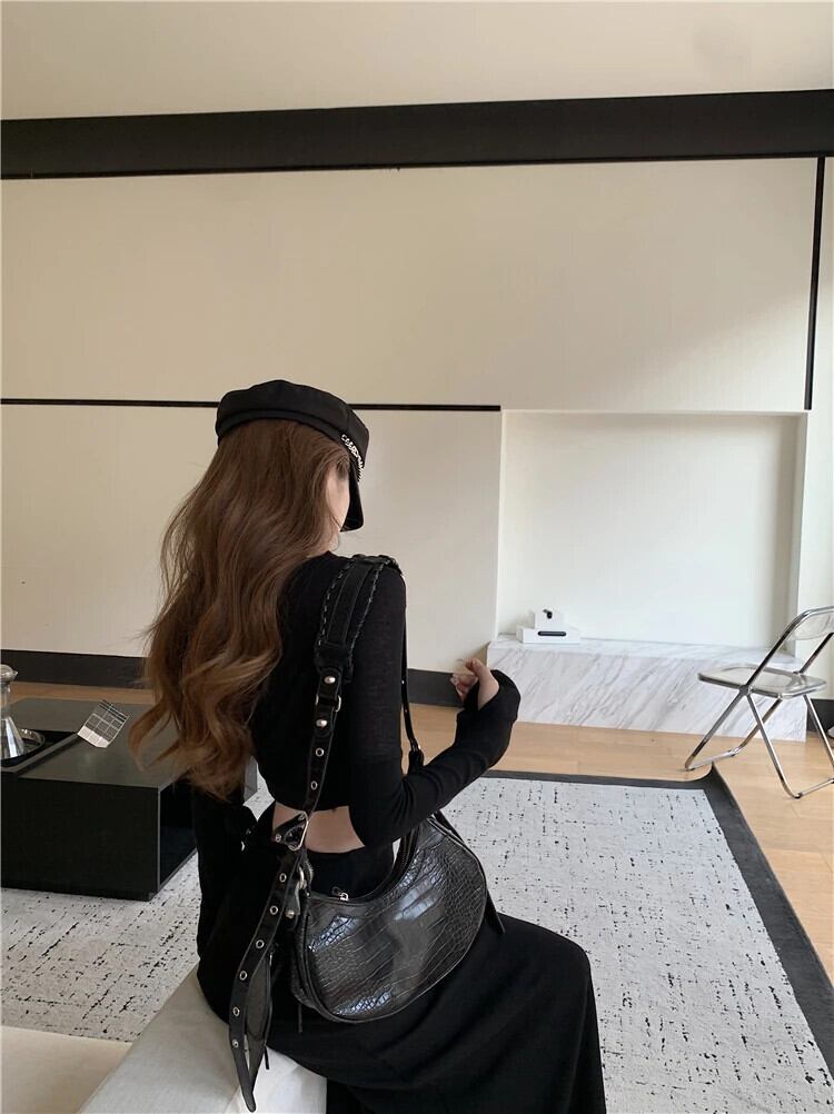 甘いホットガールスーツ冬黒半袖ボトムトップラップヒップロングスカートツーピースセット ブラック 大人ガーリー スウィート キュート カジュアル ウィンター 冬物