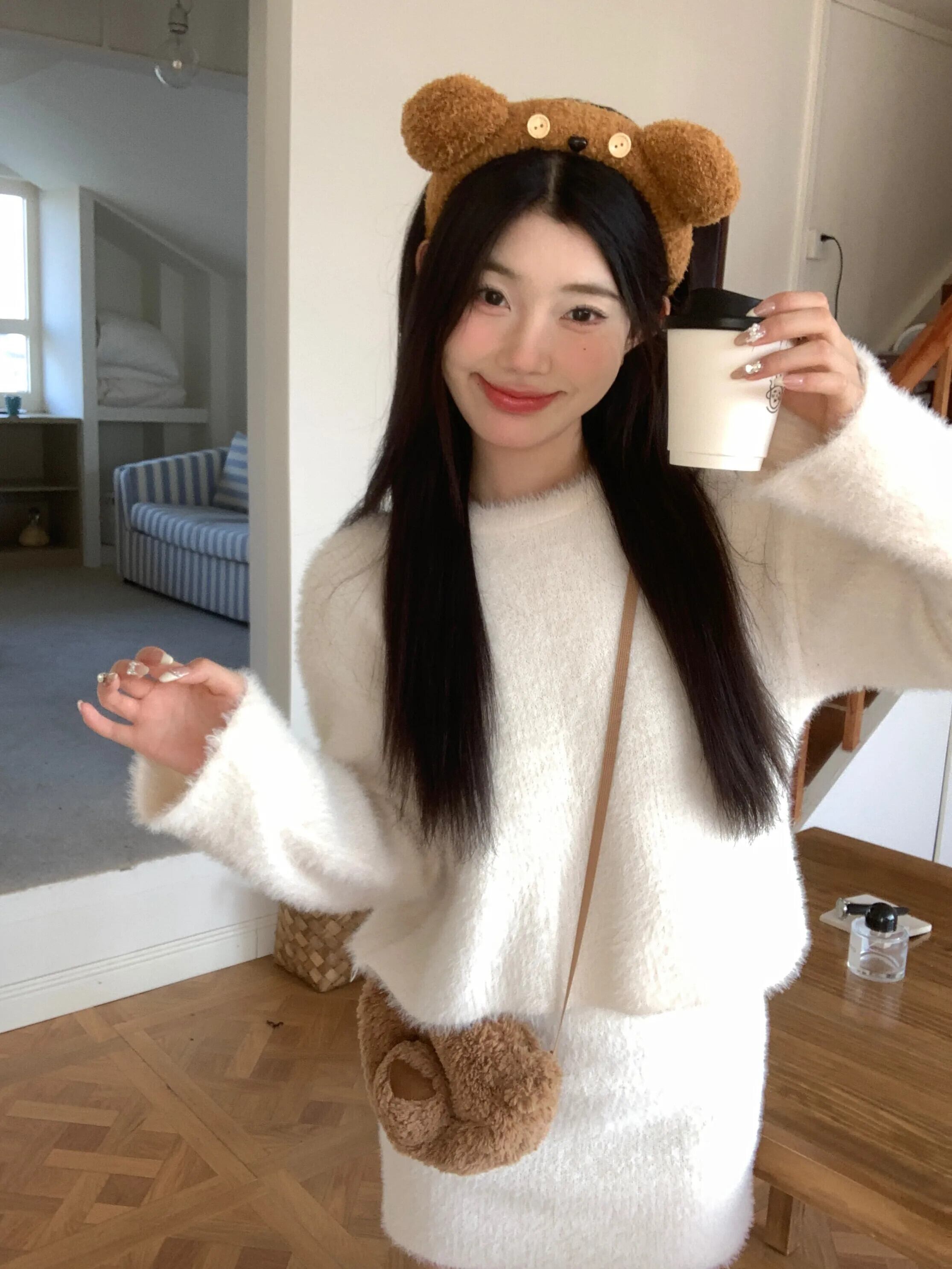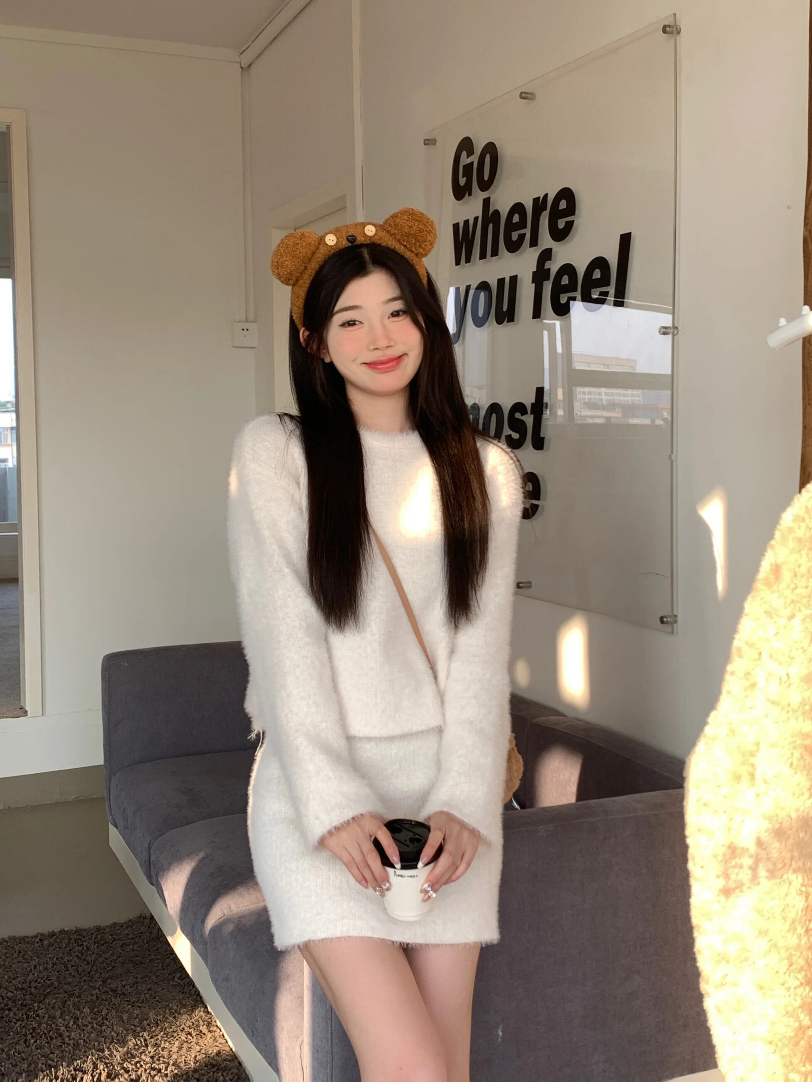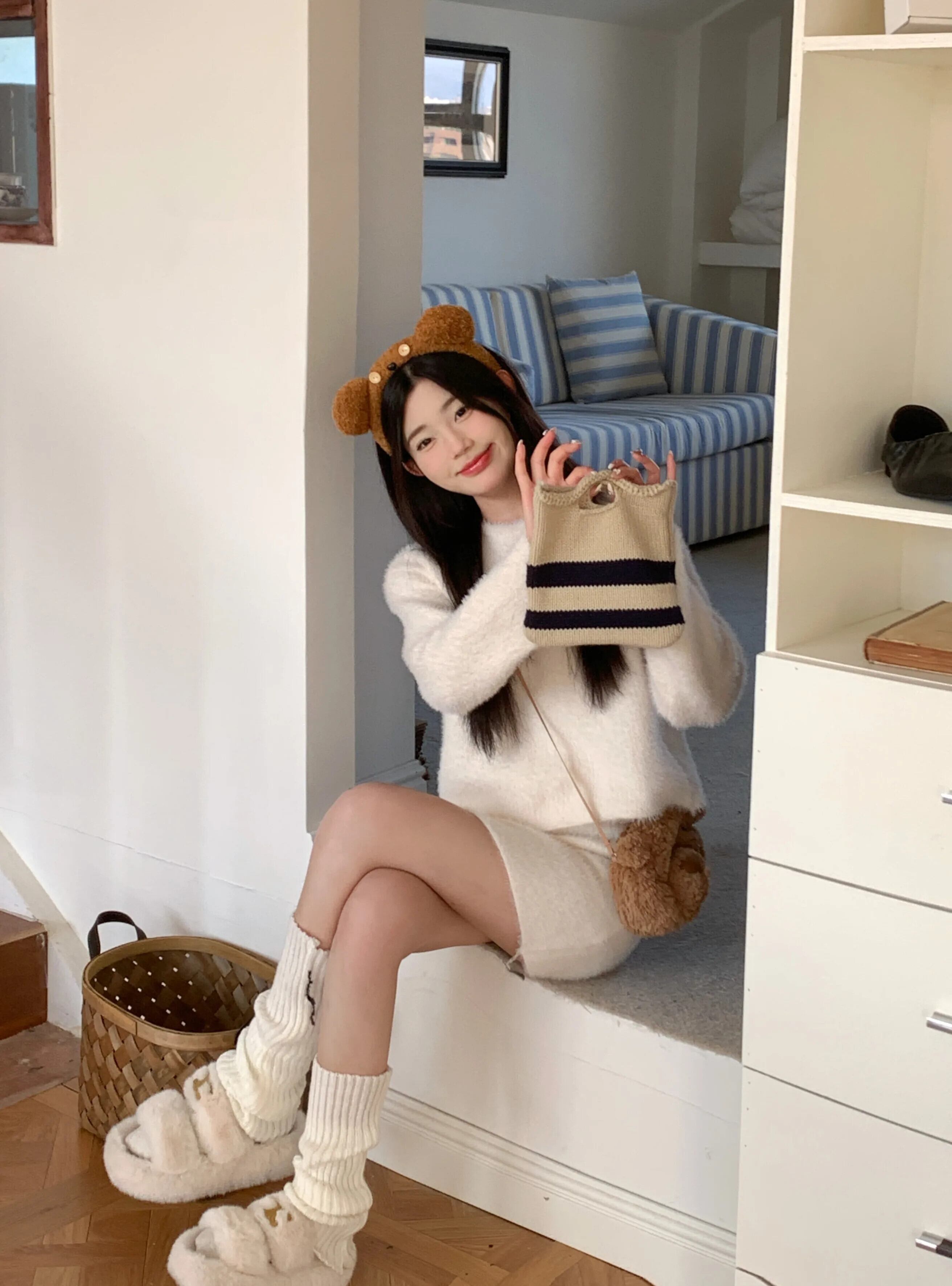 甘いホットガールスーツ冬長袖 O ネックショート毛皮ようセーターヒップラップショートスカート 2 点セット ロング 大人ガーリー スウィート キュート カジュアル ウィンター 冬物 Oネック
