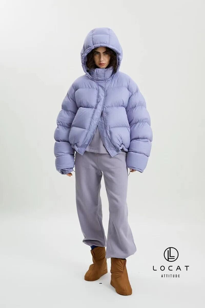 甘いホットガールフード付きダウンジャケット冬ホワイトダックダウンルーズ厚く暖かいショートジャケット 大人ガーリー スウィート キュート カジュアル ウィンター 冬物