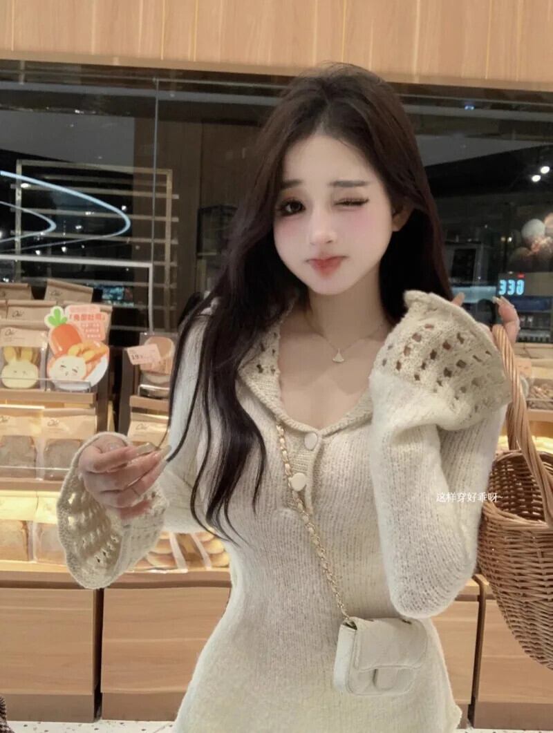 ホットガールスーツ秋冬コントラストポロネックスリム長袖セーターニットフレアパンツ 2 点セット ロング オータム 秋物 ウィンター 冬物 Oネック
