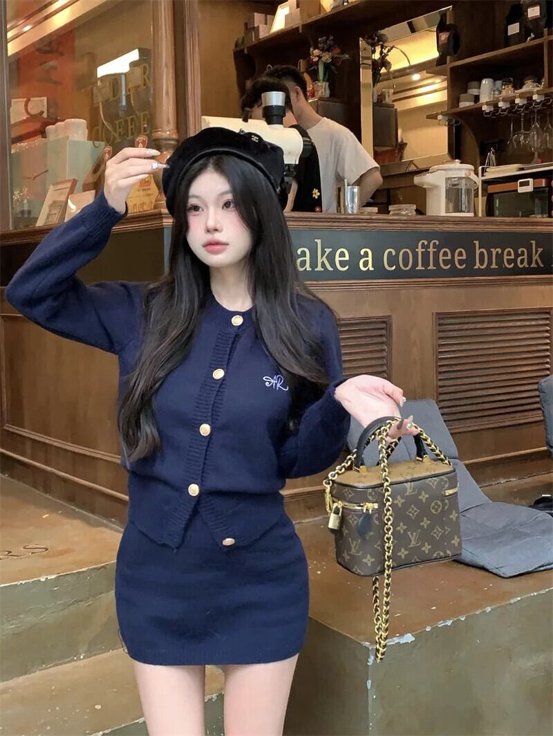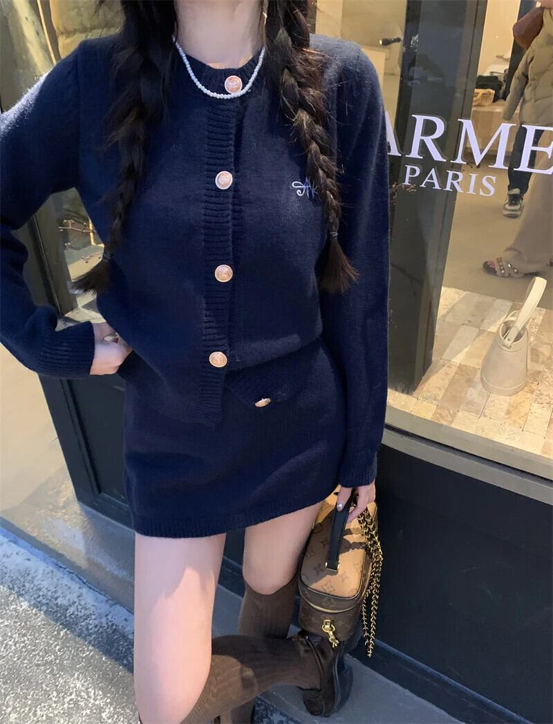 Sweet Girl プレッピースタイルニットスーツ冬刺繍厚いセーターミニスカート 2 点セット レッド 大人ガーリー スウィート キュート カジュアル ウィンター 冬物