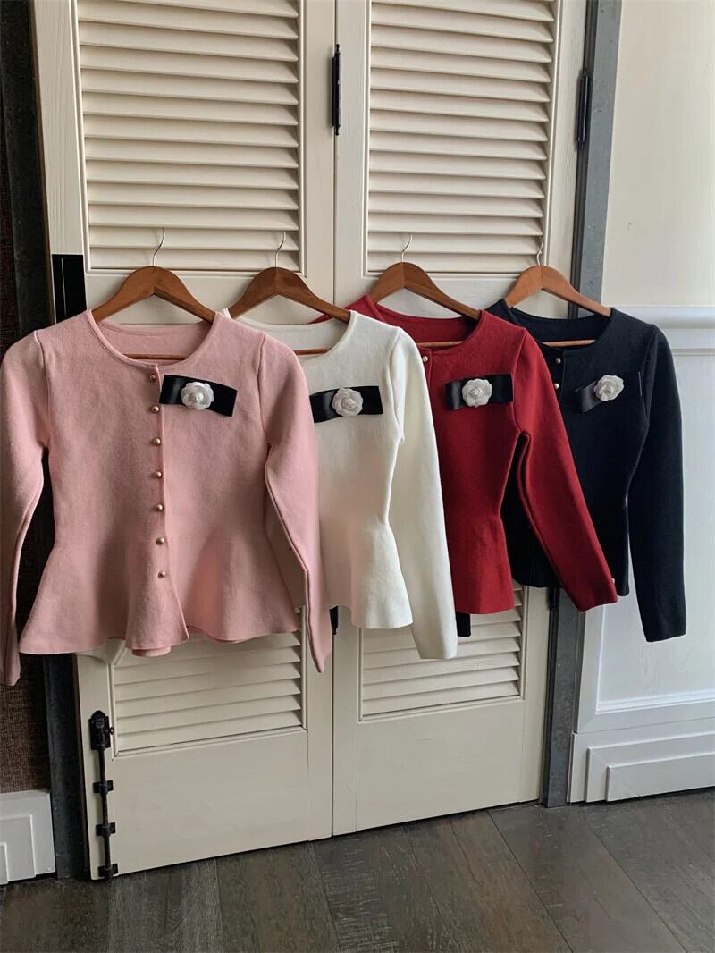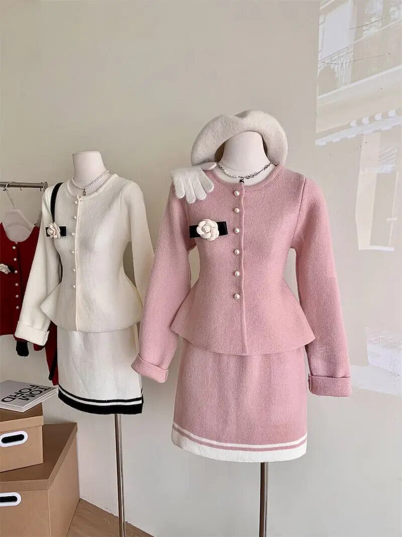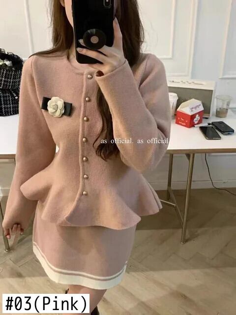 Sweet Girl スーツ レディース 秋冬 長袖 Aライン ニットシャツ ミニスカート 2点セット ロング 大人ガーリー スウィート キュート カジュアル オータム 秋物 ウィンター 冬物