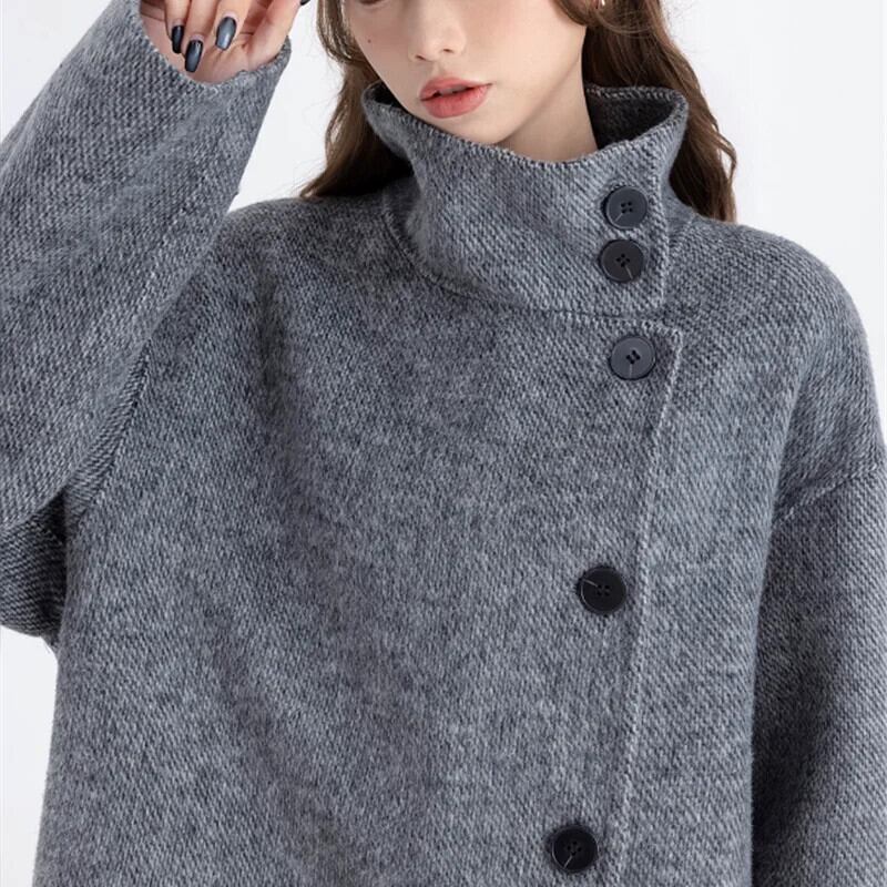 ダークグレー両面ウールコート秋と冬肥厚膝丈ルーズウールコート オータム 秋物 ウィンター 冬物
