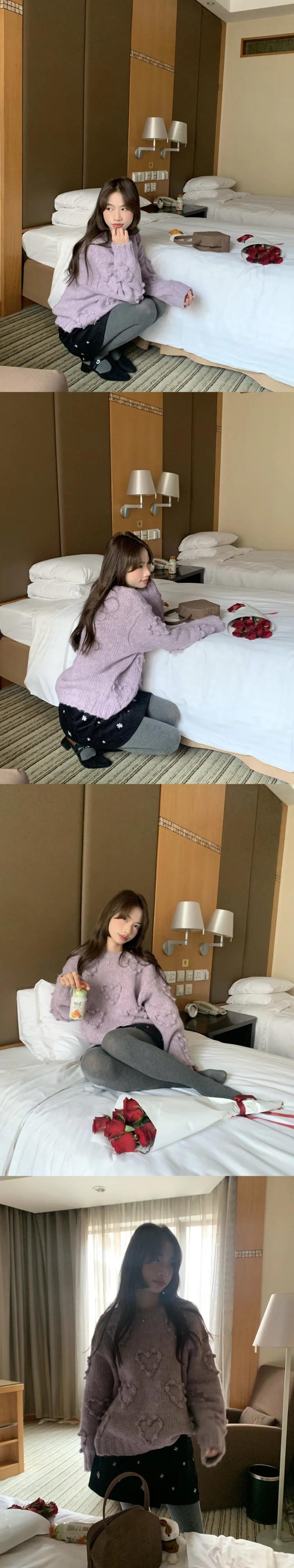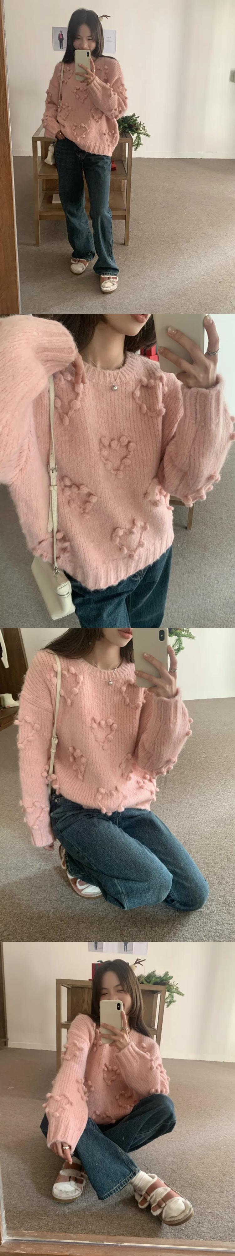 甘いホットガール O ネックルーズ長袖セーター秋/冬ハート型ニットプルオーバー ロング 大人ガーリー スウィート キュート カジュアル オータム 秋物 ウィンター 冬物 Oネック