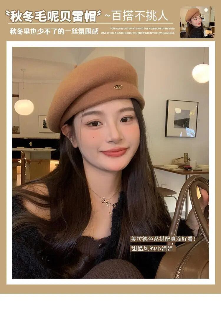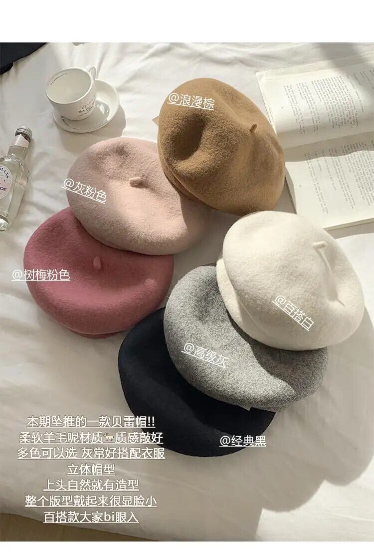 スタイル甘いホットガールウールベレー帽秋/冬ソリッドカラーペインター帽子ベレー帽トレンディアクセサリー 大人ガーリー スウィート キュート カジュアル オータム 秋物 ウィンター 冬物 ベレット ヘアアクセサリー