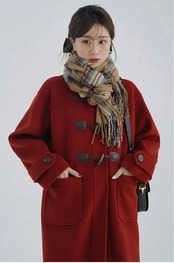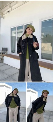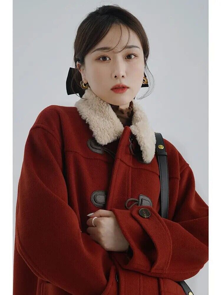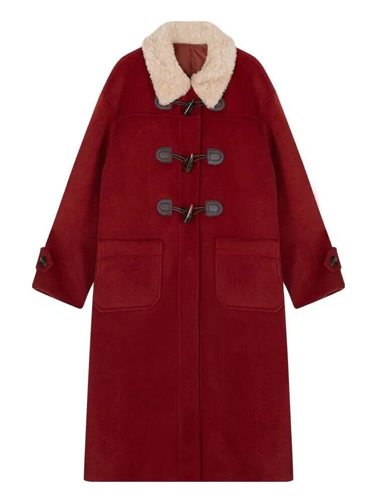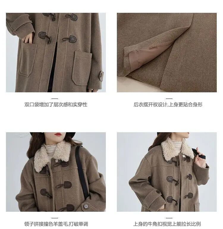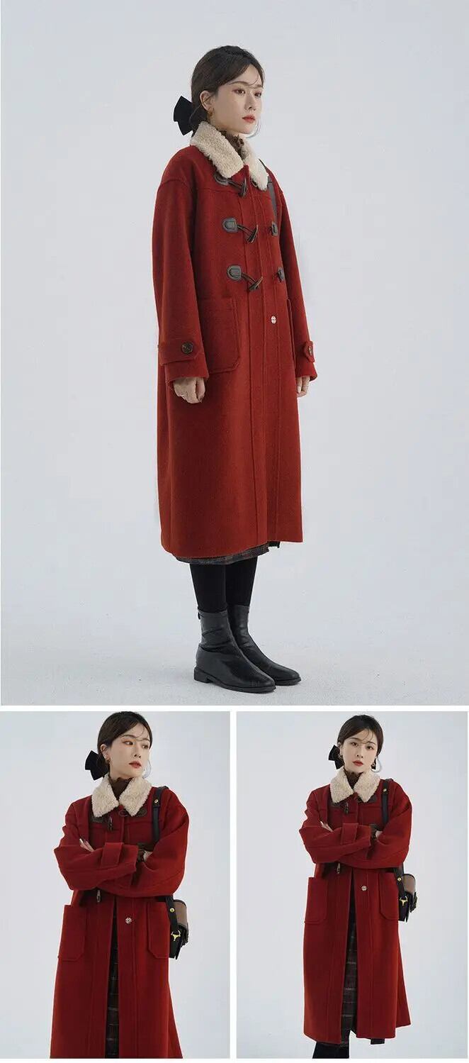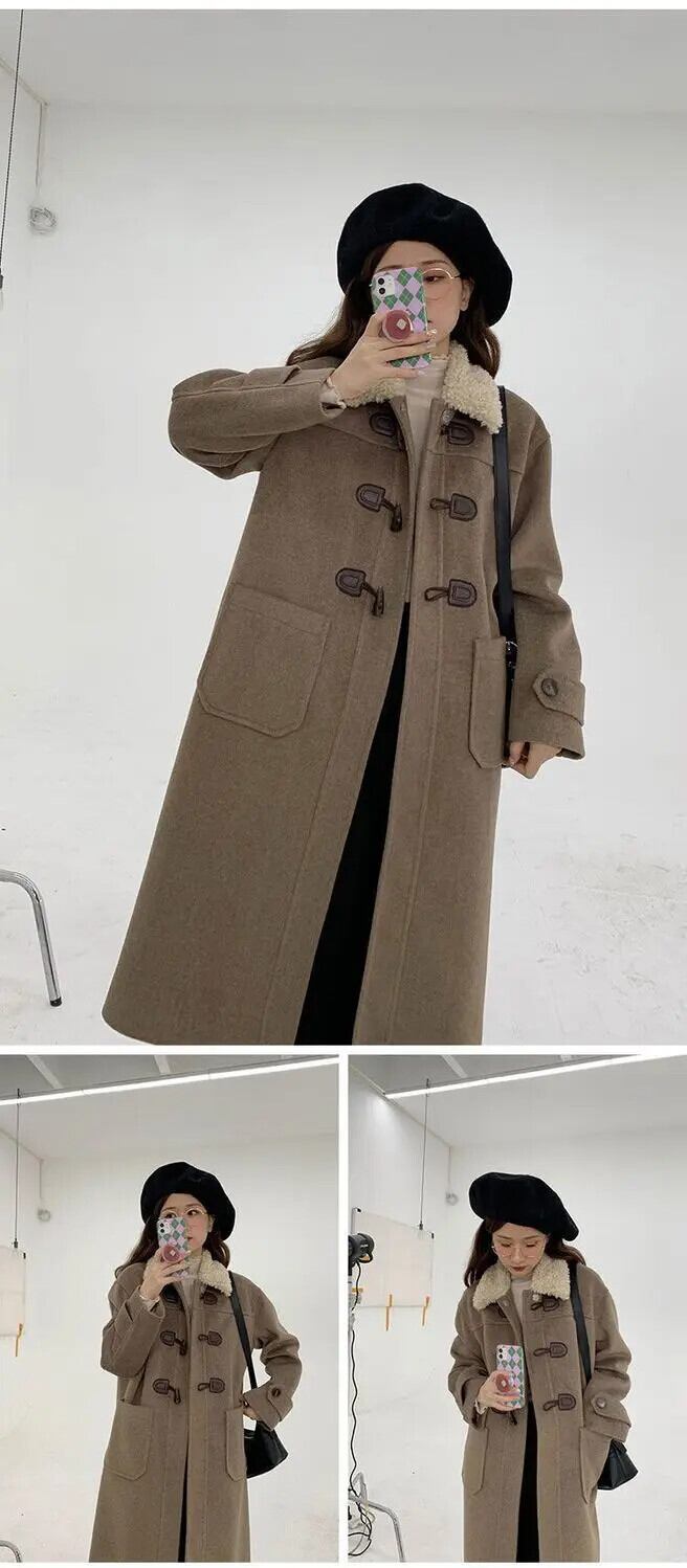 甘いホットガールプレッピースタイルウールコート冬ホーンボタン厚い毛皮襟ロングコート 大人ガーリー スウィート キュート カジュアル ウィンター 冬物