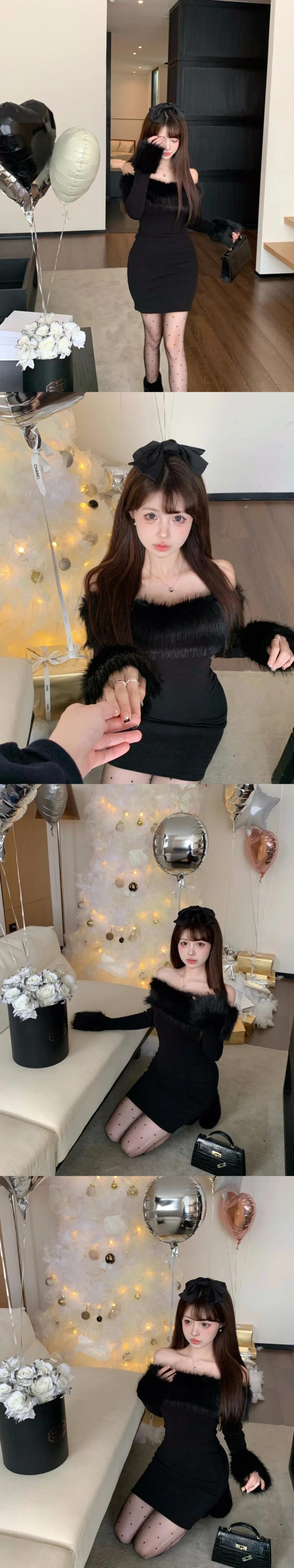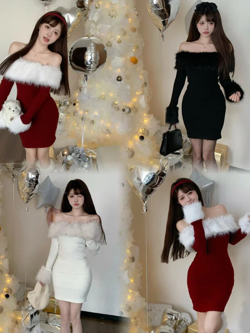 ホットガールファースプライシングオフショルダー長袖ドレス秋/冬純粋セクシースリムヒップラップショートドレス ロング オータム 秋物 ウィンター 冬物 ピュア