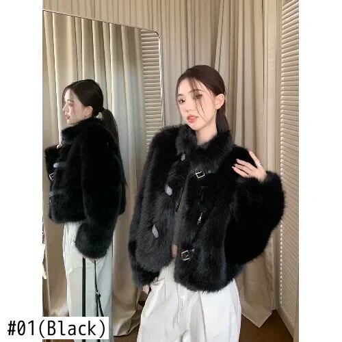甘いホットガール黒ターンダウン襟フェイクファージャケット冬ルーズで暖かいぬいぐるみジャケット ブラック 大人ガーリー スウィート キュート カジュアル ウィンター 冬物