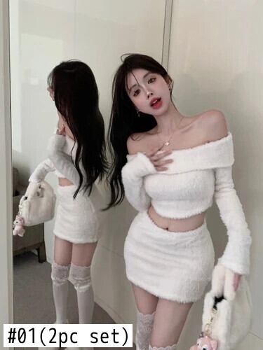 純粋セクシーホットガールスーツ冬オフショルダーショートぬいぐるみトップラップヒップミニスカートツーピースセット ウィンター 冬物