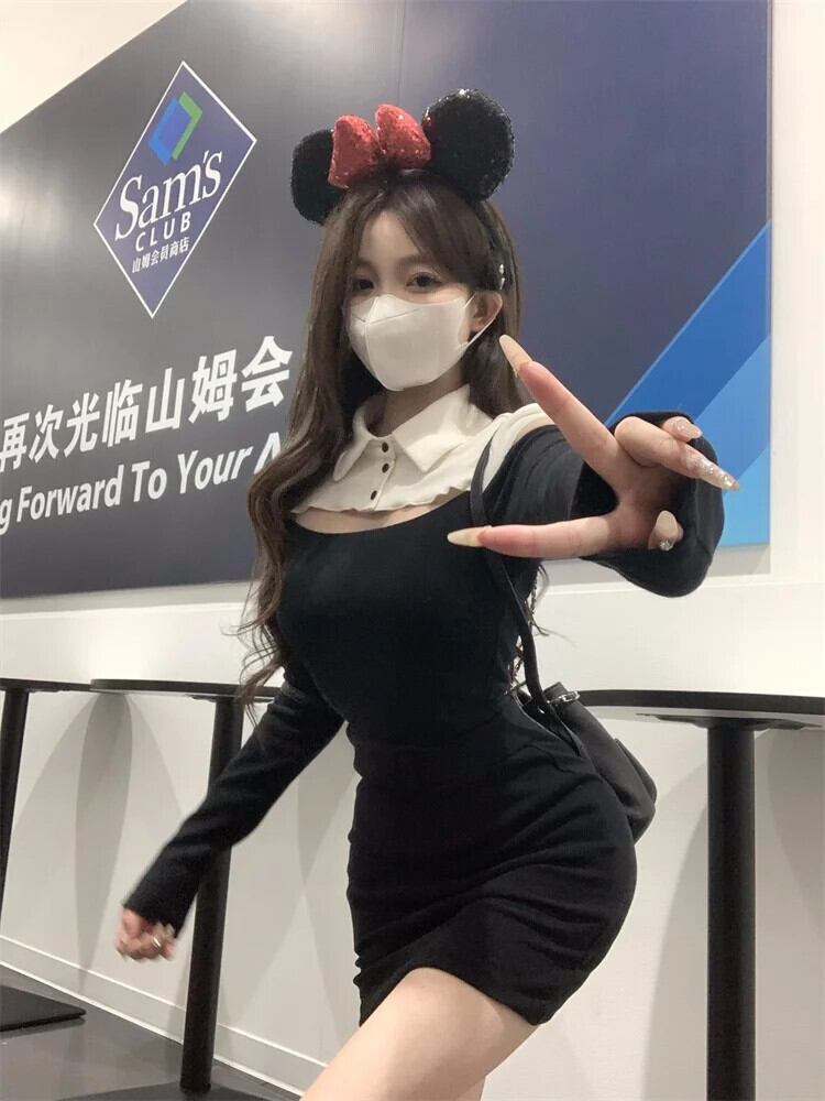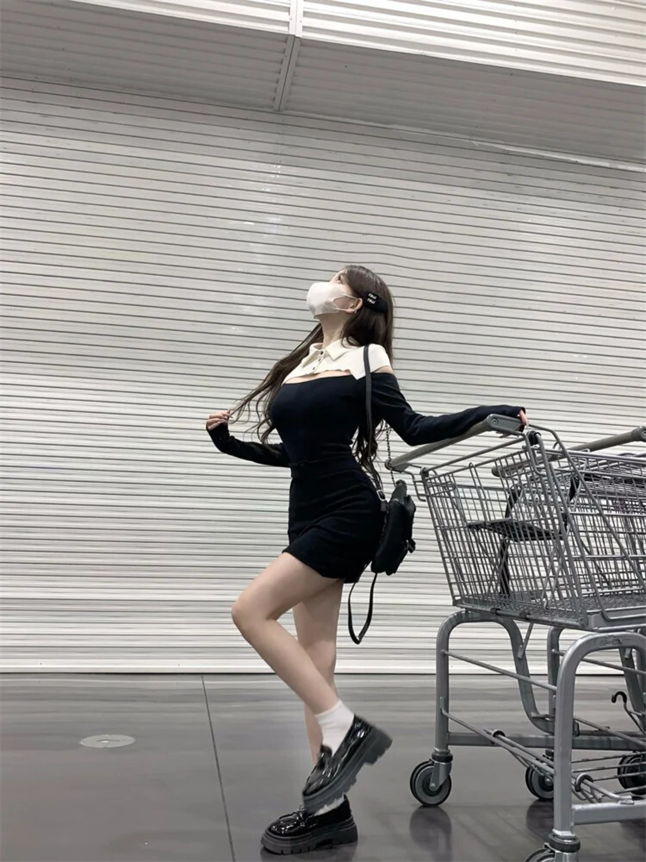 甘いホットガールポロネックアウトドレス秋/冬純粋セクシー長袖ラップヒップドレス ロング 大人ガーリー スウィート キュート カジュアル オータム 秋物 ウィンター 冬物 Oネック ピュア