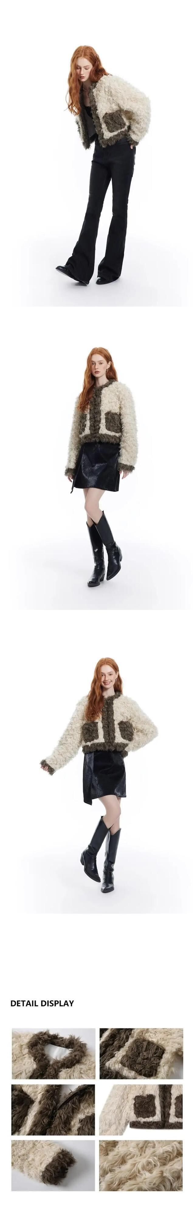 甘いホットガールフェイクファージャケット秋/冬レトロ肥厚ショートウールラムカシミヤジャケット 大人ガーリー スウィート キュート カジュアル オータム 秋物 ウィンター 冬物