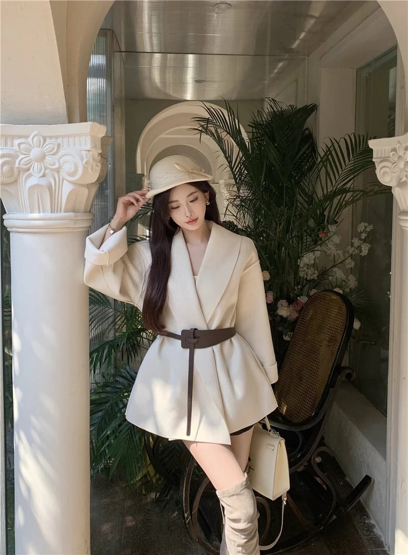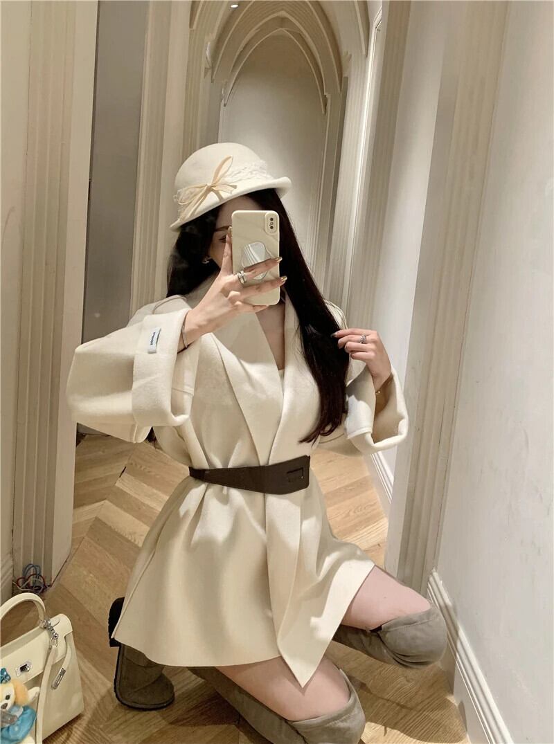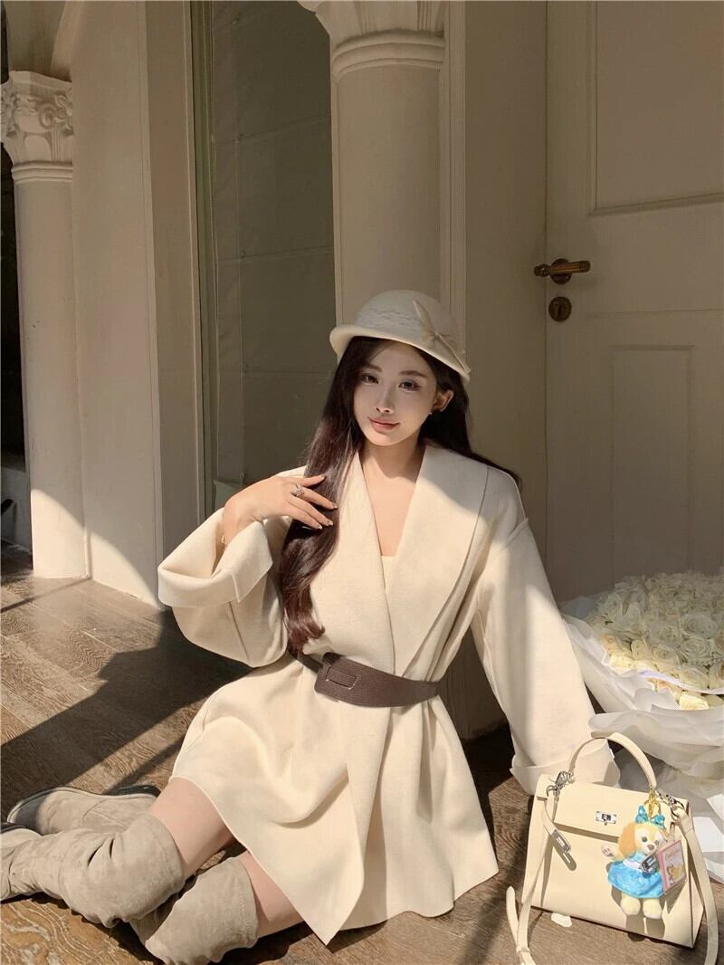 Sweet Hot Girl ウールコート レディース 秋冬 ミディアム丈 スリムフィット 長袖 レースアップ ウールコート ロング 大人ガーリー スウィート キュート カジュアル オータム 秋物 ウィンター 冬物