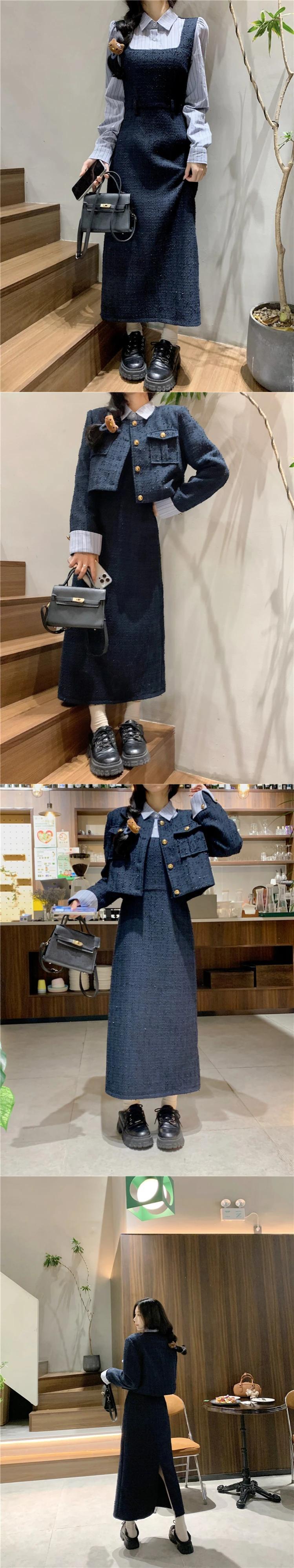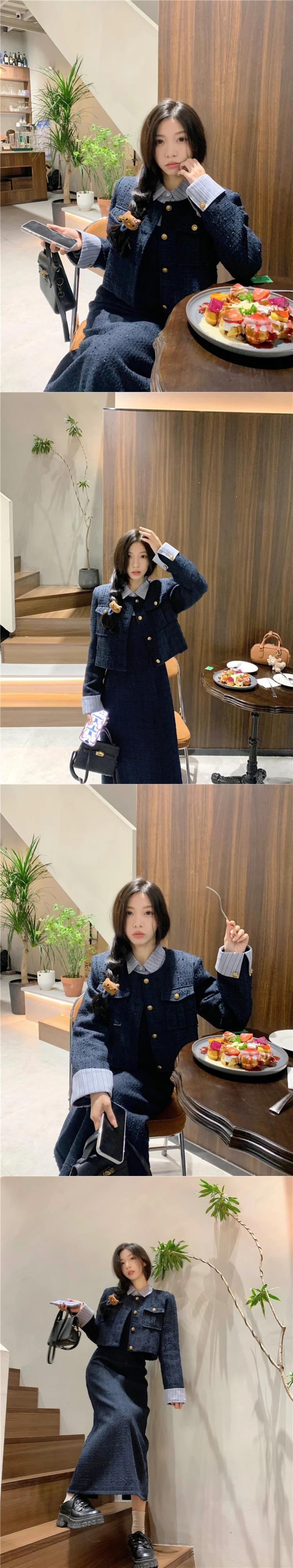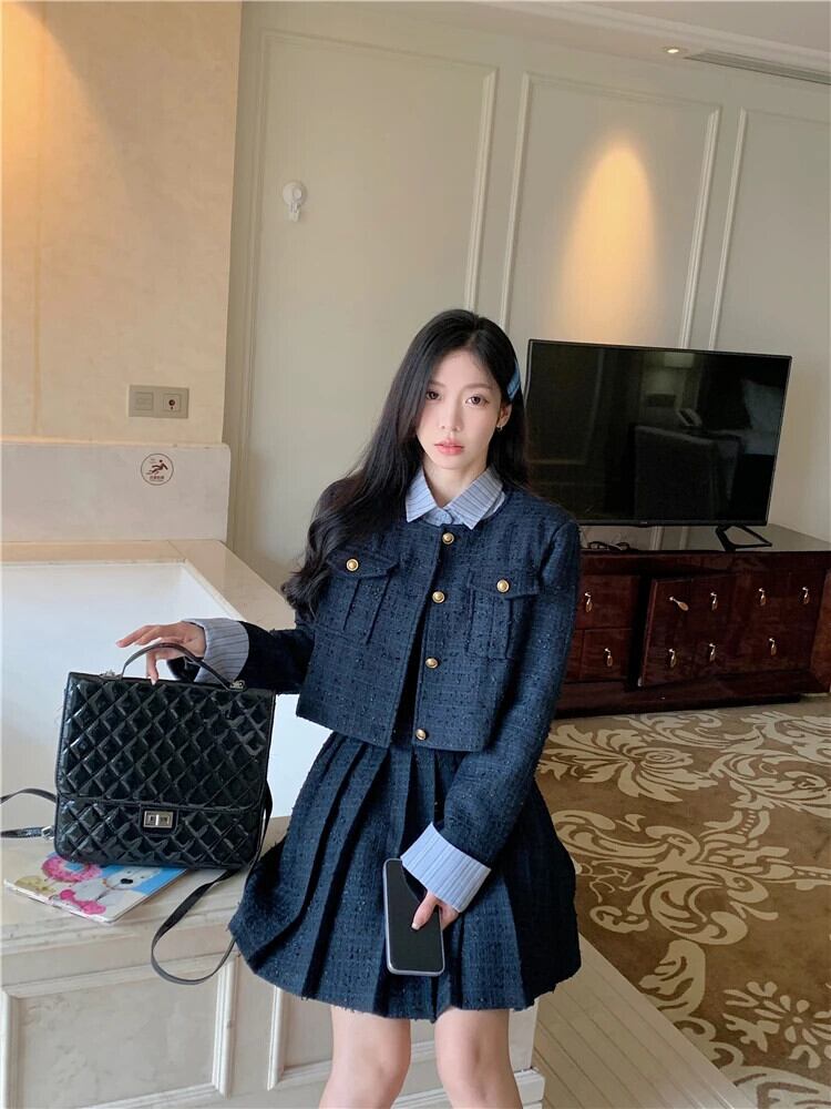 Sweet Girl プレッピースタイルスーツ秋/冬コットンジャケットパッチプリーツシャツドレス 2 点セット 大人ガーリー スウィート キュート カジュアル オータム 秋物 ウィンター 冬物