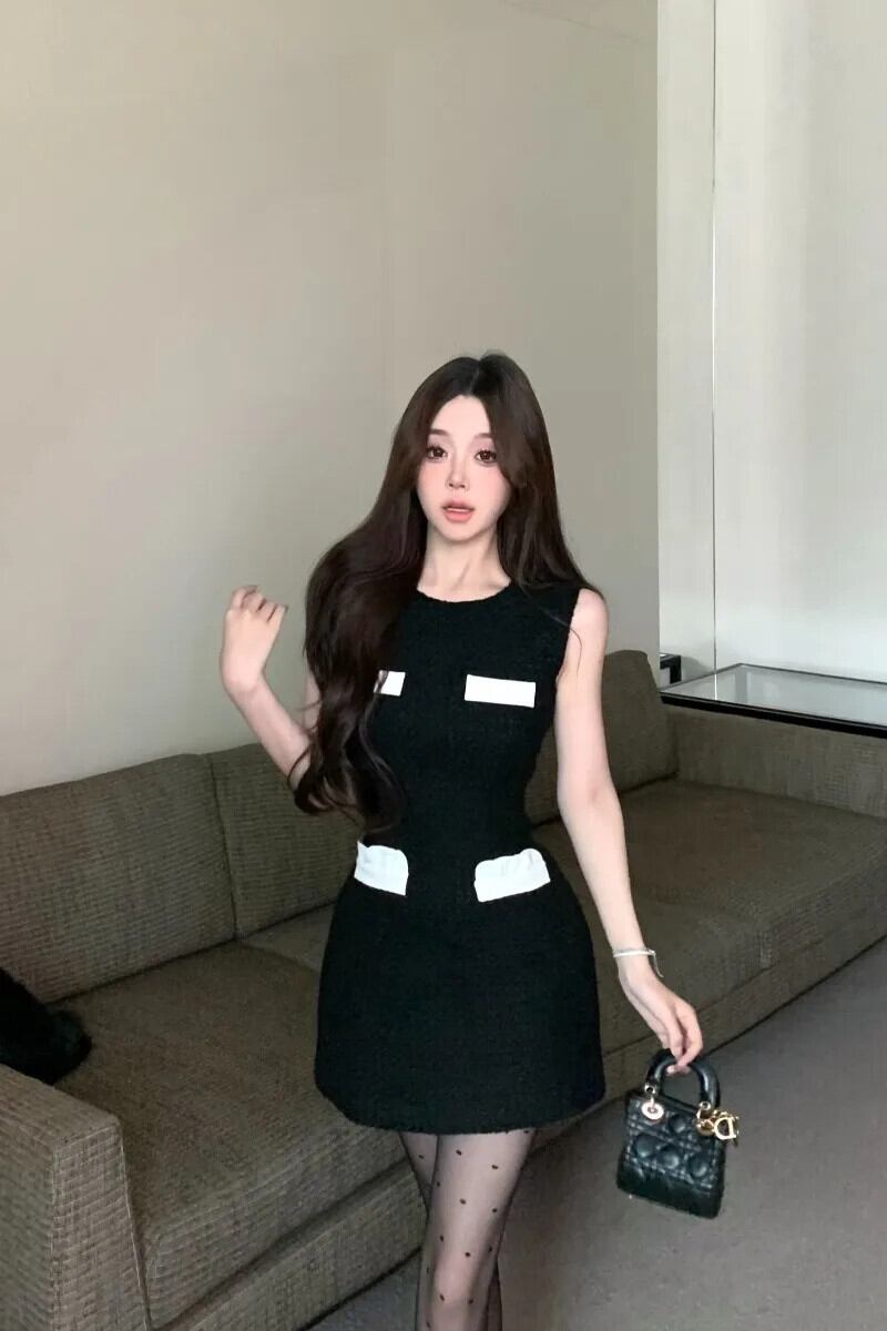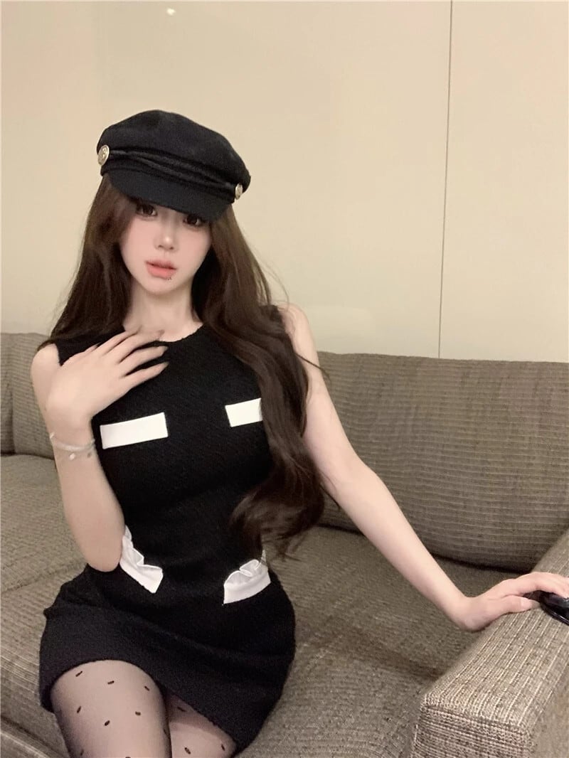 甘いホットガール対照的ウールドレス冬スリムフィットノースリーブヒップラップショートドレス 大人ガーリー スウィート キュート カジュアル ウィンター 冬物