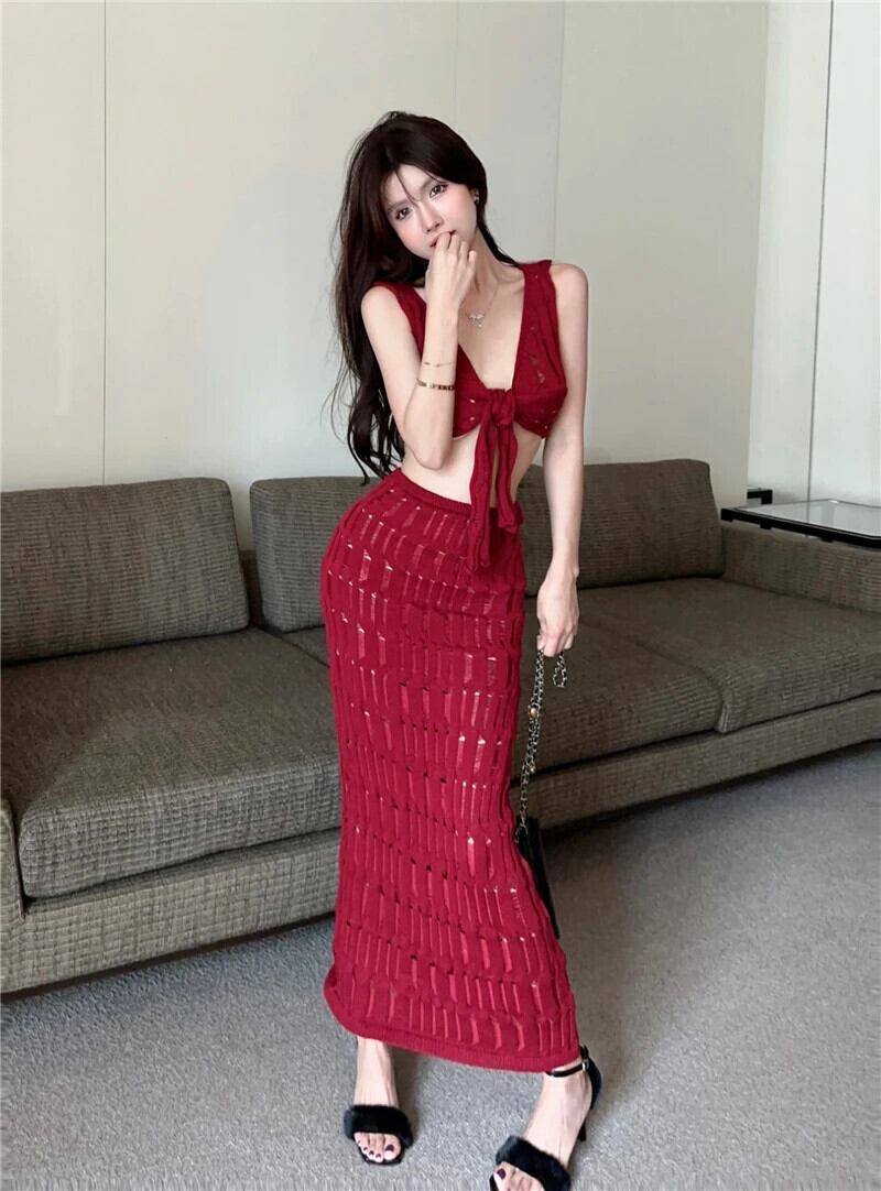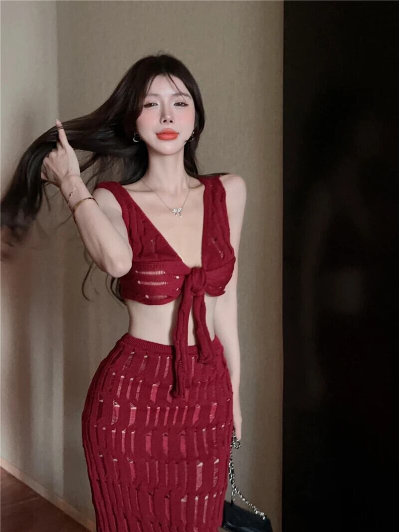 甘いホットガールスーツ秋/冬ショートレースアップトップローウエストアウトマーメイドスカートツーピースセット 大人ガーリー スウィート キュート カジュアル オータム 秋物 ウィンター 冬物