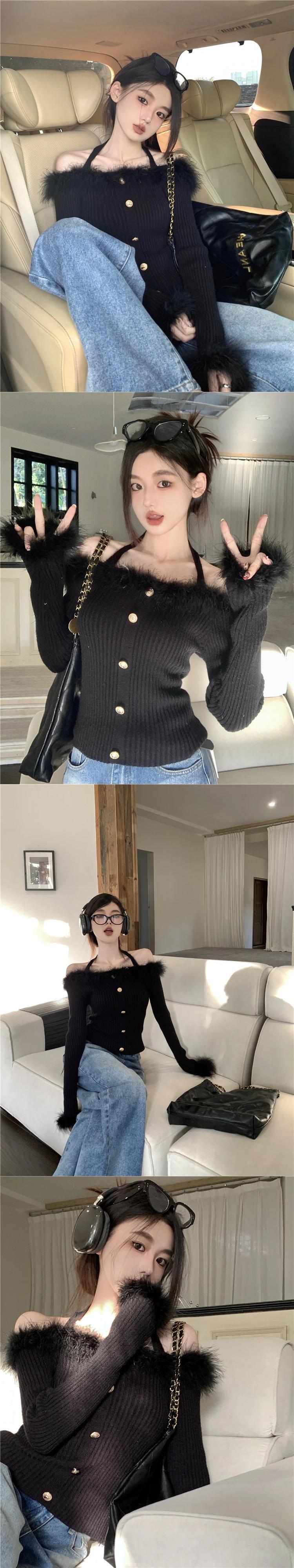 ホットガール純粋セクシースラッシュネックセーター秋/冬ホルターオフショルダーシングルブレストニット オータム 秋物 ウィンター 冬物 ピュア