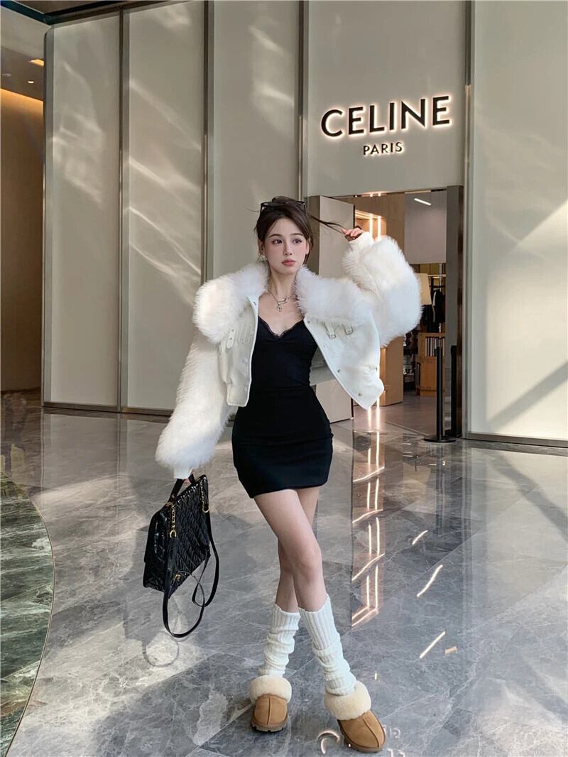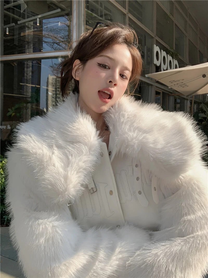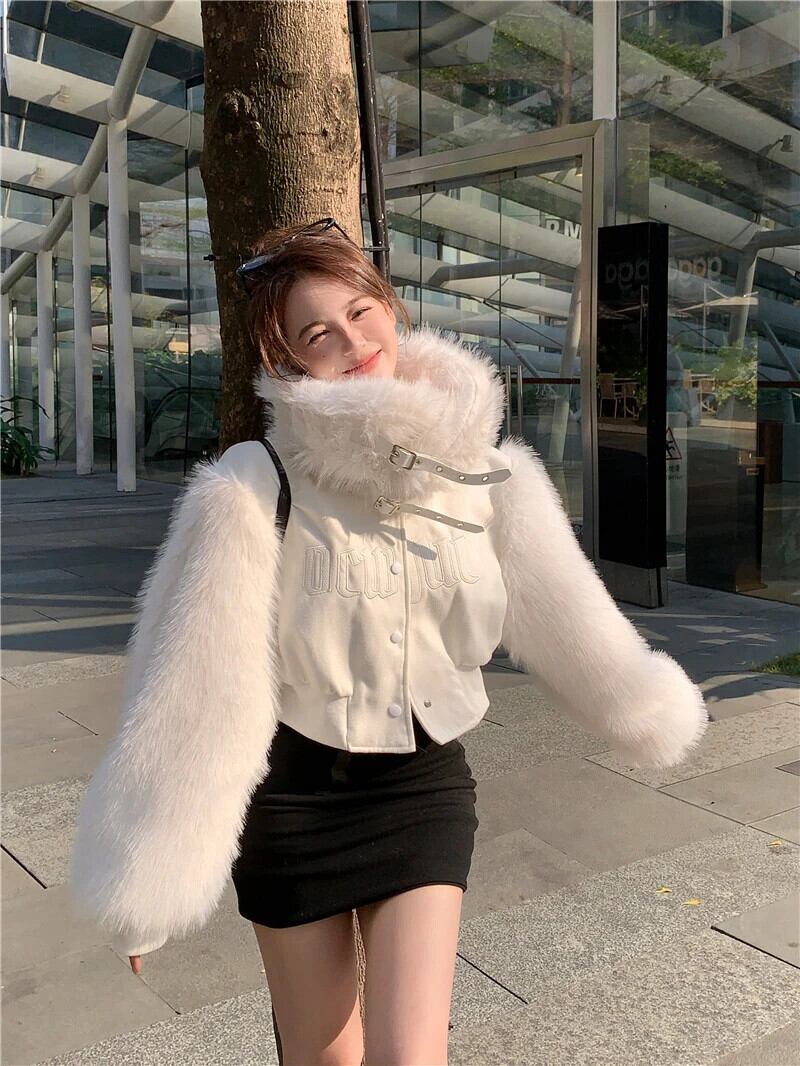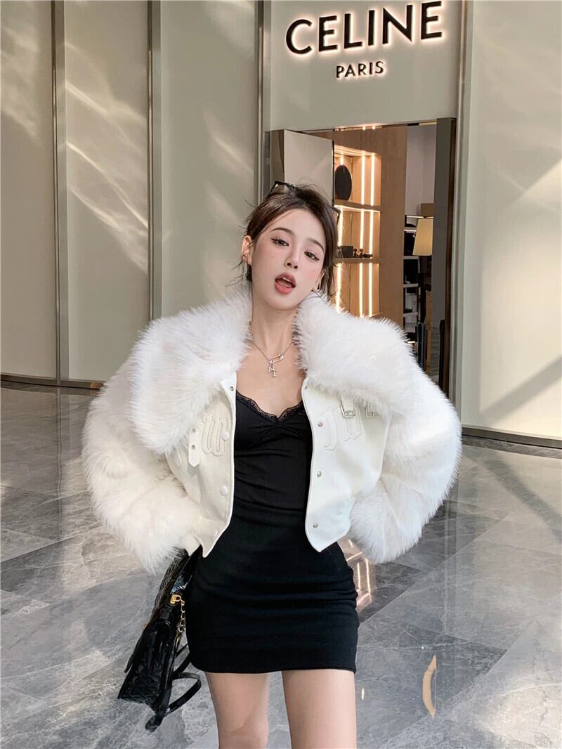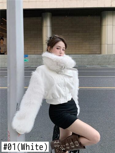アメリカンホットガールフェイクファーショートジャケット秋/冬刺繍スタンドカラー長袖ジャケットカーディガントップ ロング レッド オータム 秋物 ウィンター 冬物