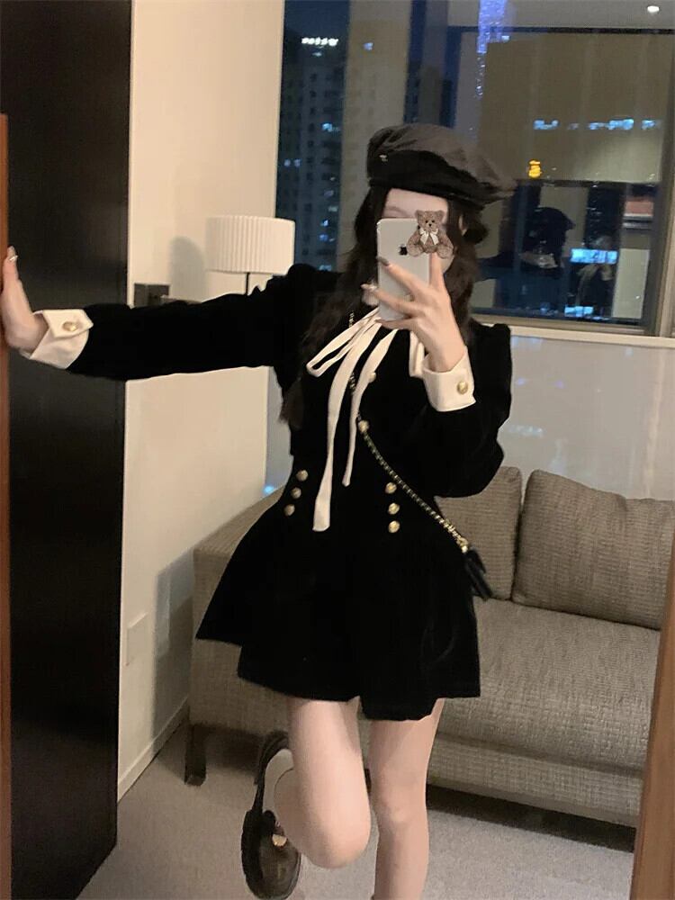 フレンチスイートホットガールスーツ秋長袖ショートコートウエストミニスカートツーピースセット ロング 大人ガーリー スウィート キュート カジュアル オータム 秋物