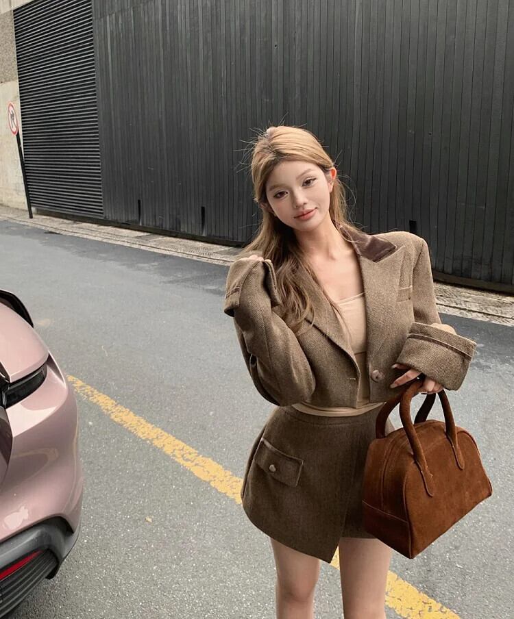 甘いホットガールスーツ秋/冬ノッチ襟ショートジャケット不規則ミニスカート 2 点セット 大人ガーリー スウィート キュート カジュアル オータム 秋物 ウィンター 冬物