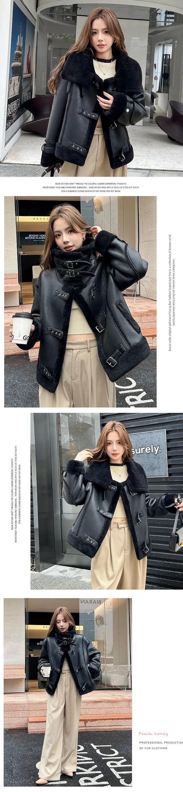 甘いホットガール両面毛皮ジャケット冬ターンダウン襟ラムウールショートジャケット 大人ガーリー スウィート キュート カジュアル ウィンター 冬物