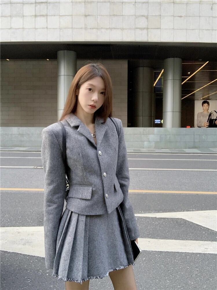 Sweet Girl プレッピー スタイル スーツ レディース 秋/冬 スリム フィット スーツ コート プリーツ ショート スカート 2 点セット 大人ガーリー スウィート キュート カジュアル オータム 秋物 ウィンター 冬物