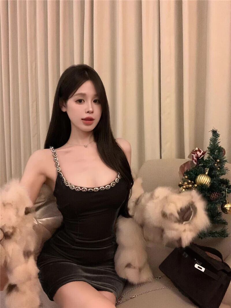 甘いホットガールセクシーベルベットストラップドレス秋スリムフィットダイヤモンドラップヒップショートドレス 大人ガーリー スウィート キュート カジュアル オータム 秋物