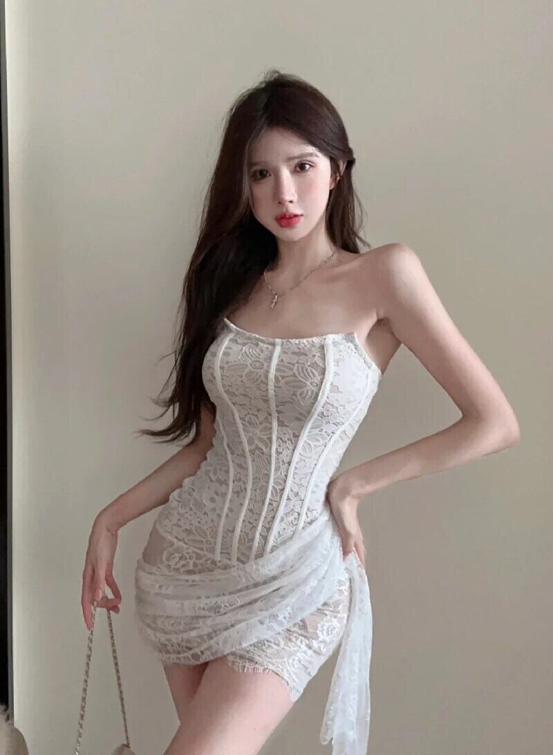 甘いホットガールセクシードレス秋レースフィッシュボーンオフショルダーストラップレススリムフィットラップヒップドレス 大人ガーリー スウィート キュート カジュアル オータム 秋物