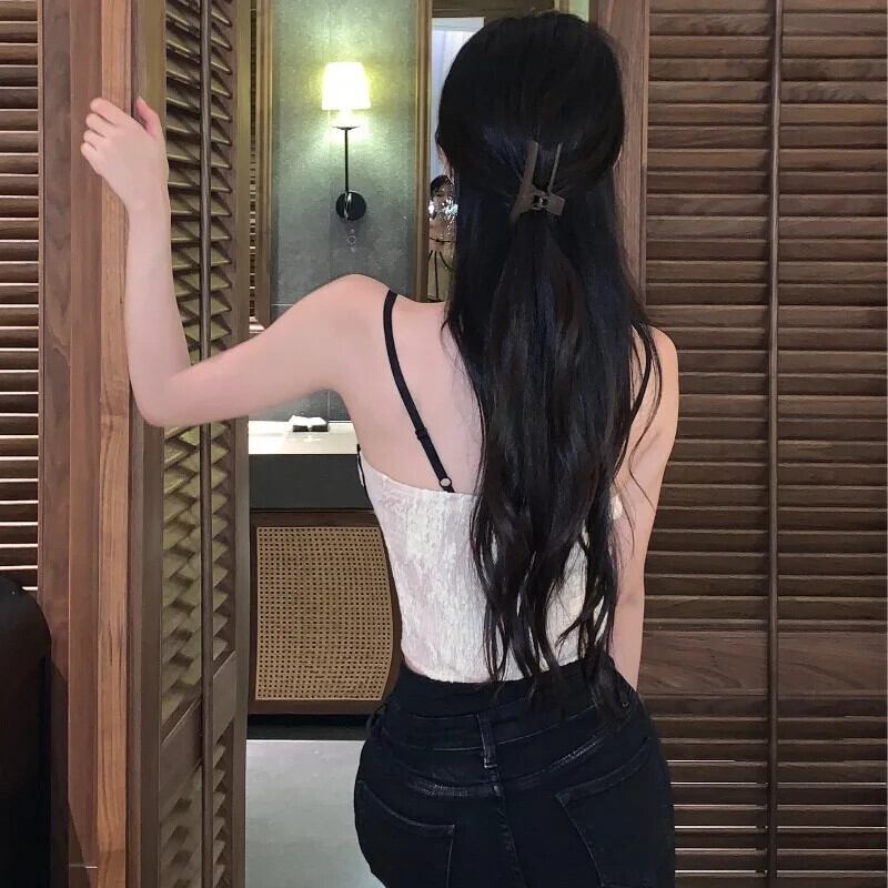 甘いホットガール純粋セクシーレースキャミソールベスト秋/冬プリント弾性弓ショートストラップトップ リボン エラスティック 伸縮 大人ガーリー スウィート キュート カジュアル オータム 秋物 ウィンター 冬物 ピュア