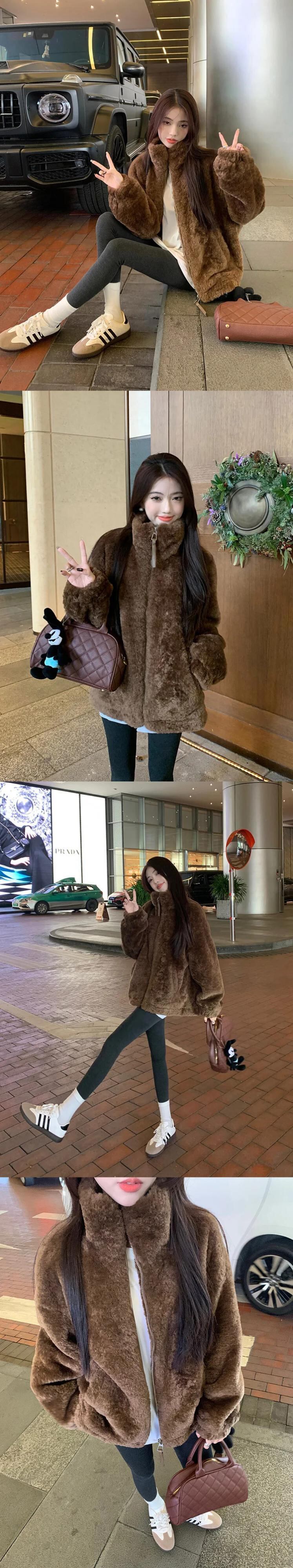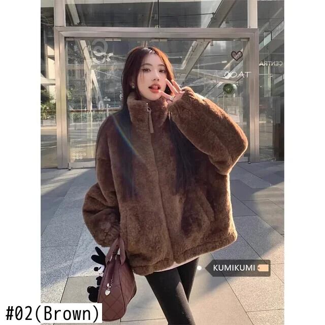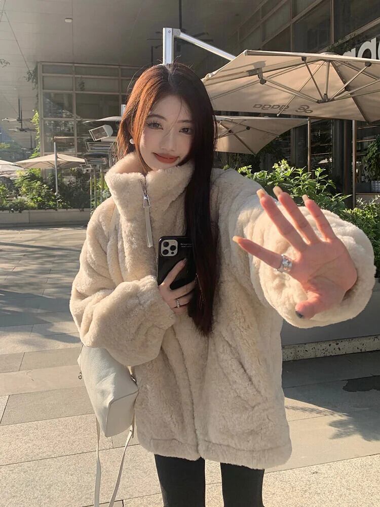 甘いホットガールコーヒーぬいぐるみジッパーコート冬ルーズ/暖かいスタンドカラージャケット 大人ガーリー スウィート キュート カジュアル ウィンター 冬物