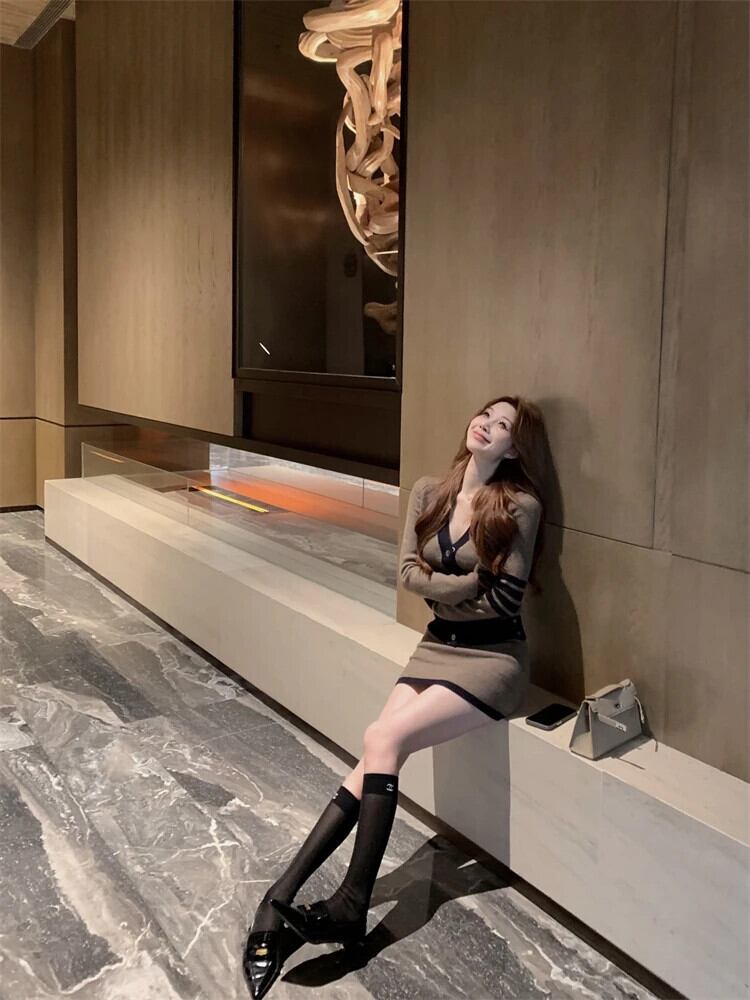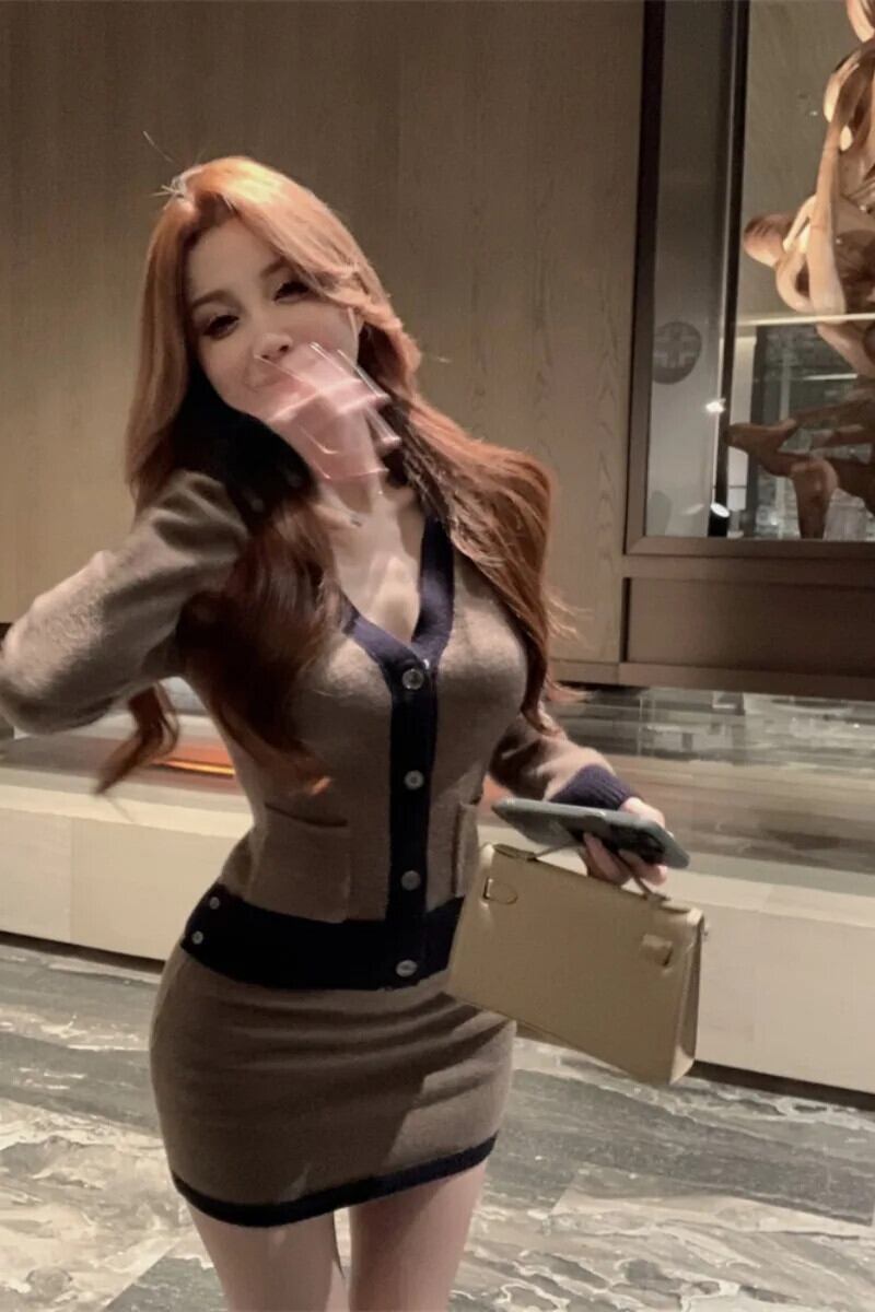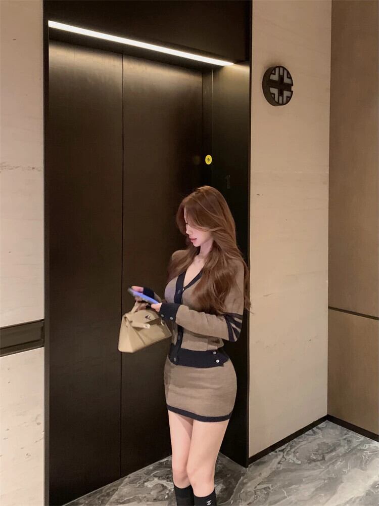 アメリカンスウィートホットガールスーツ レディース秋冬長袖Vネックニットカーディガンウエストミニスカート2点セット ロング 大人ガーリー キュート カジュアル オータム 秋物 ウィンター 冬物