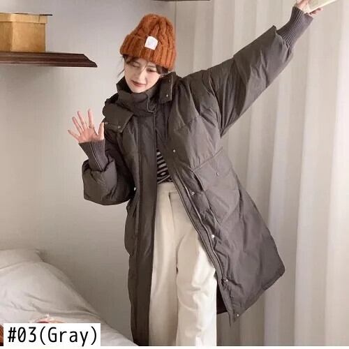 甘いホットガールソリッドカラーフード付きパンジャケット冬ルーズフィット長綿ジャケット ロング コットン 大人ガーリー スウィート キュート カジュアル ウィンター 冬物