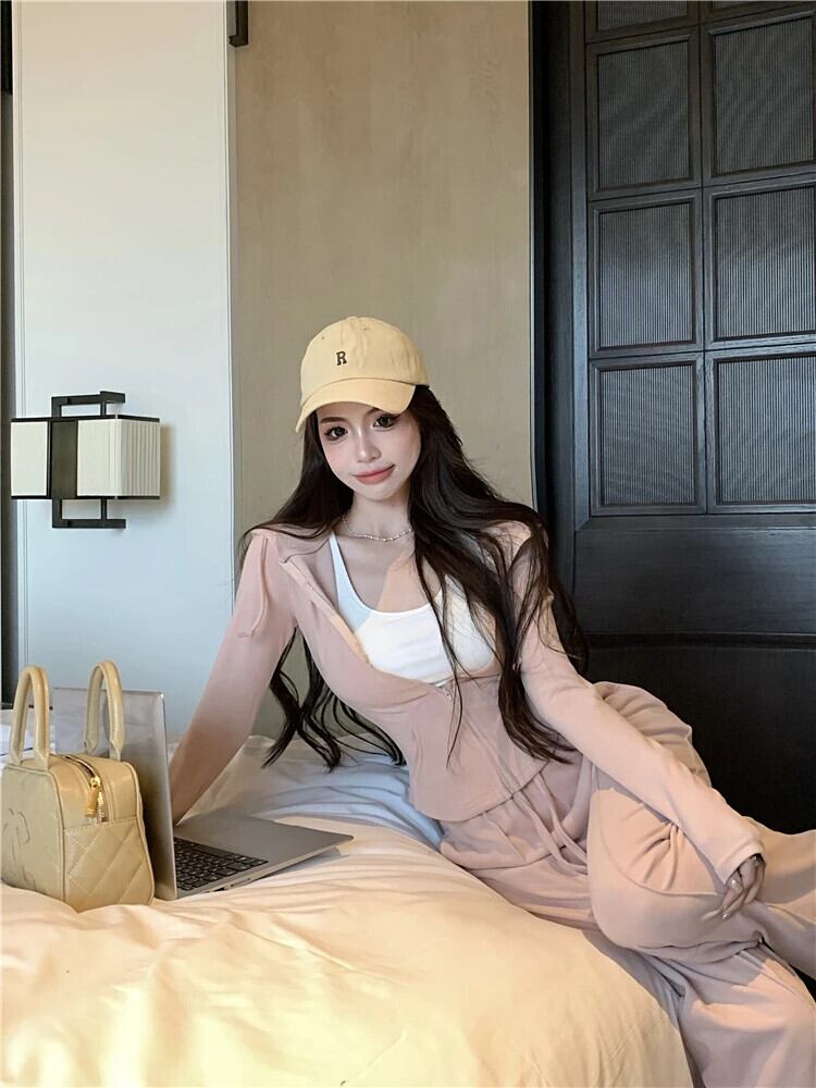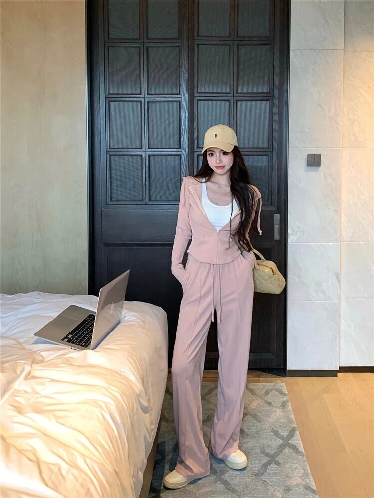 スイートホットガールスーツ冬ショートソリッドカラーフード付きジャケット弾性ウエストストレートレッグパンツツーピースセット エラスティック 伸縮 大人ガーリー スウィート キュート カジュアル ウィンター 冬物