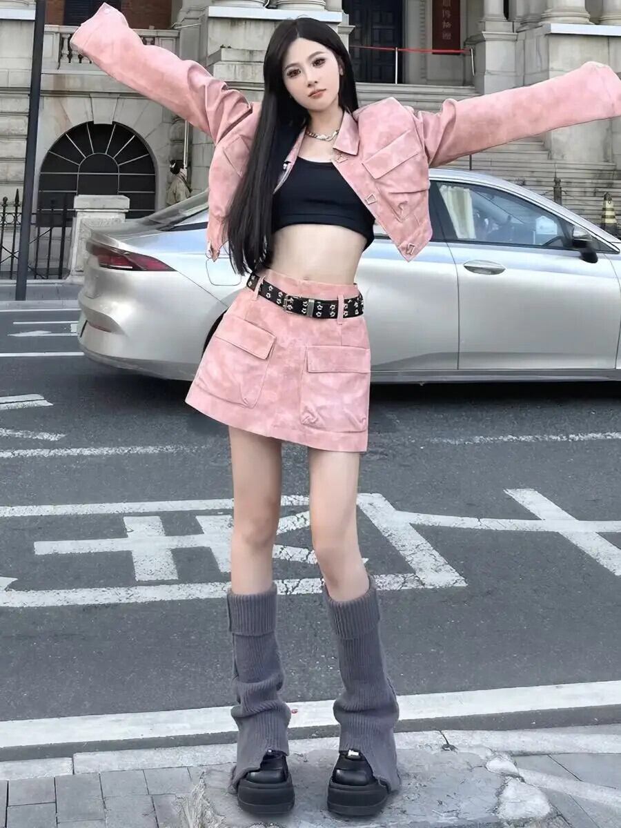 甘いホットガールセクシースーツ春ターンダウン襟コートウエストミニスカート 2 点セット 大人ガーリー スウィート キュート カジュアル スプリング 春物