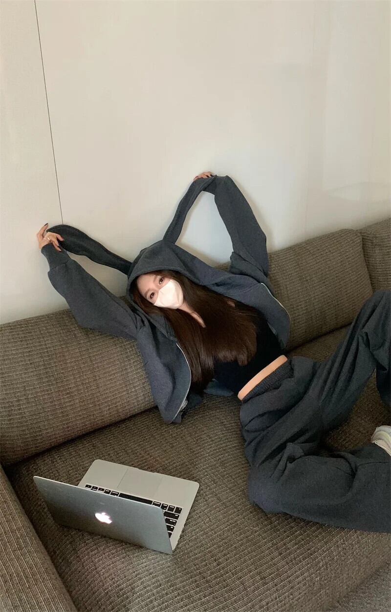 ホットガールスポーツスーツ春無地フード付きコートウエストワイドレッグパンツ 2 点セット スプリング 春物 ワイドパンツ ソリッドカラー