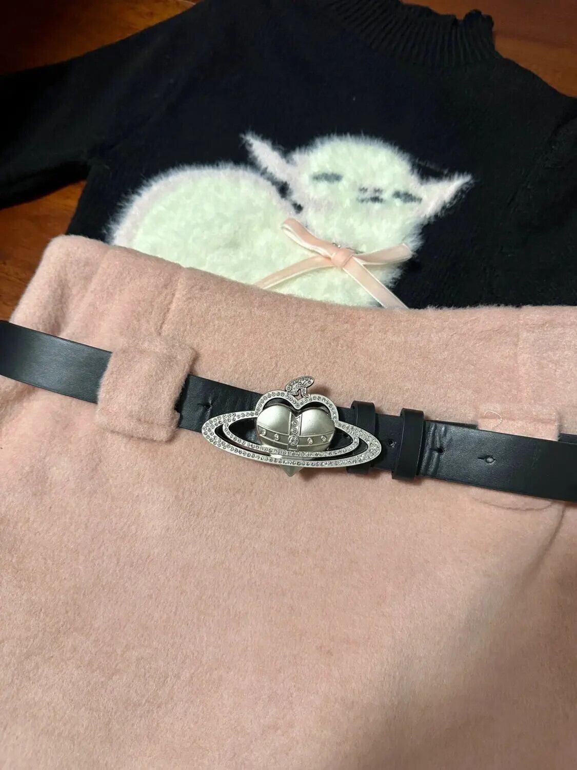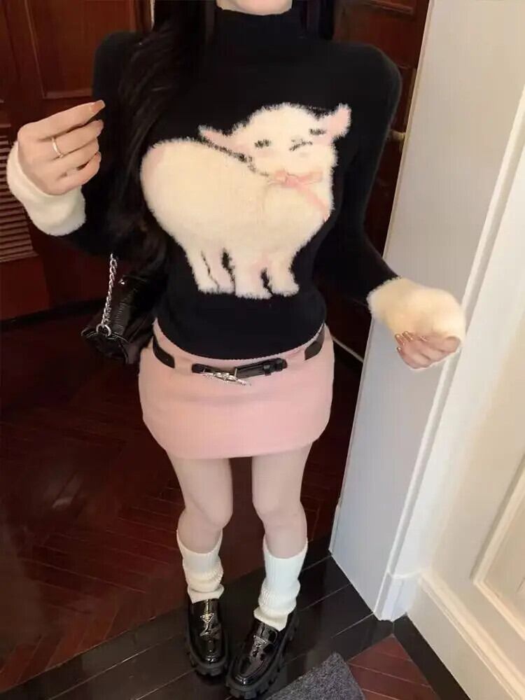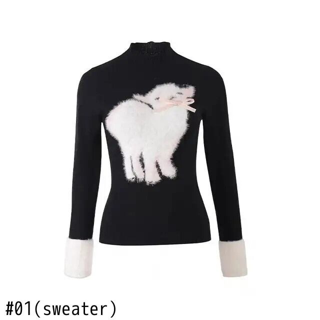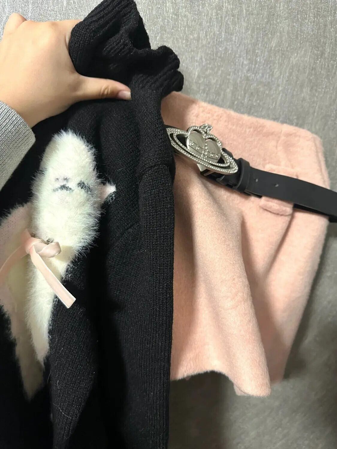 純粋セクシーホットガールニットスーツ冬弓スプライシングハーフネックセーターウエストウールミニスカートツーピースセット リボン ウィンター 冬物