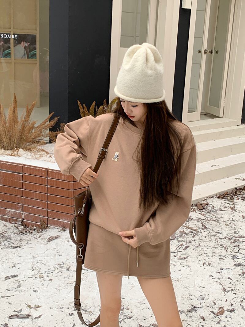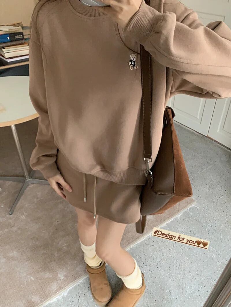 スイートホットガールスーツ レディース 春 刺繍 長袖 O ネック プルオーバー ウエスト A ライン ショート スカート 2 点セット ロング レッド 大人ガーリー スウィート キュート カジュアル スプリング 春物 Oネック Aライン