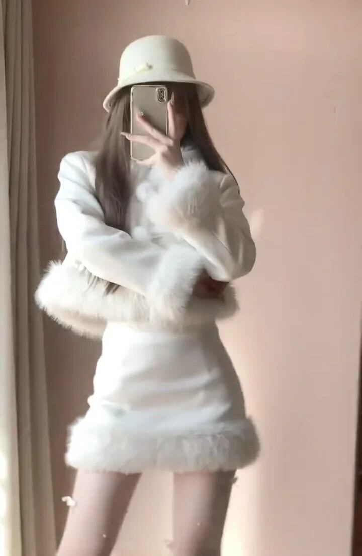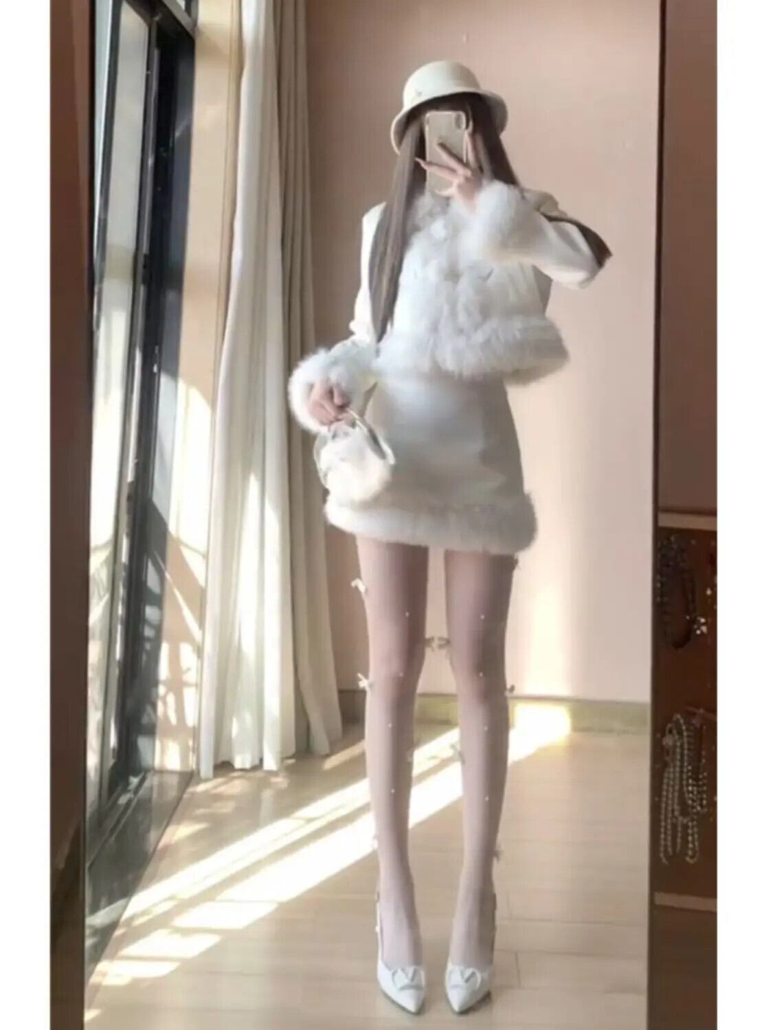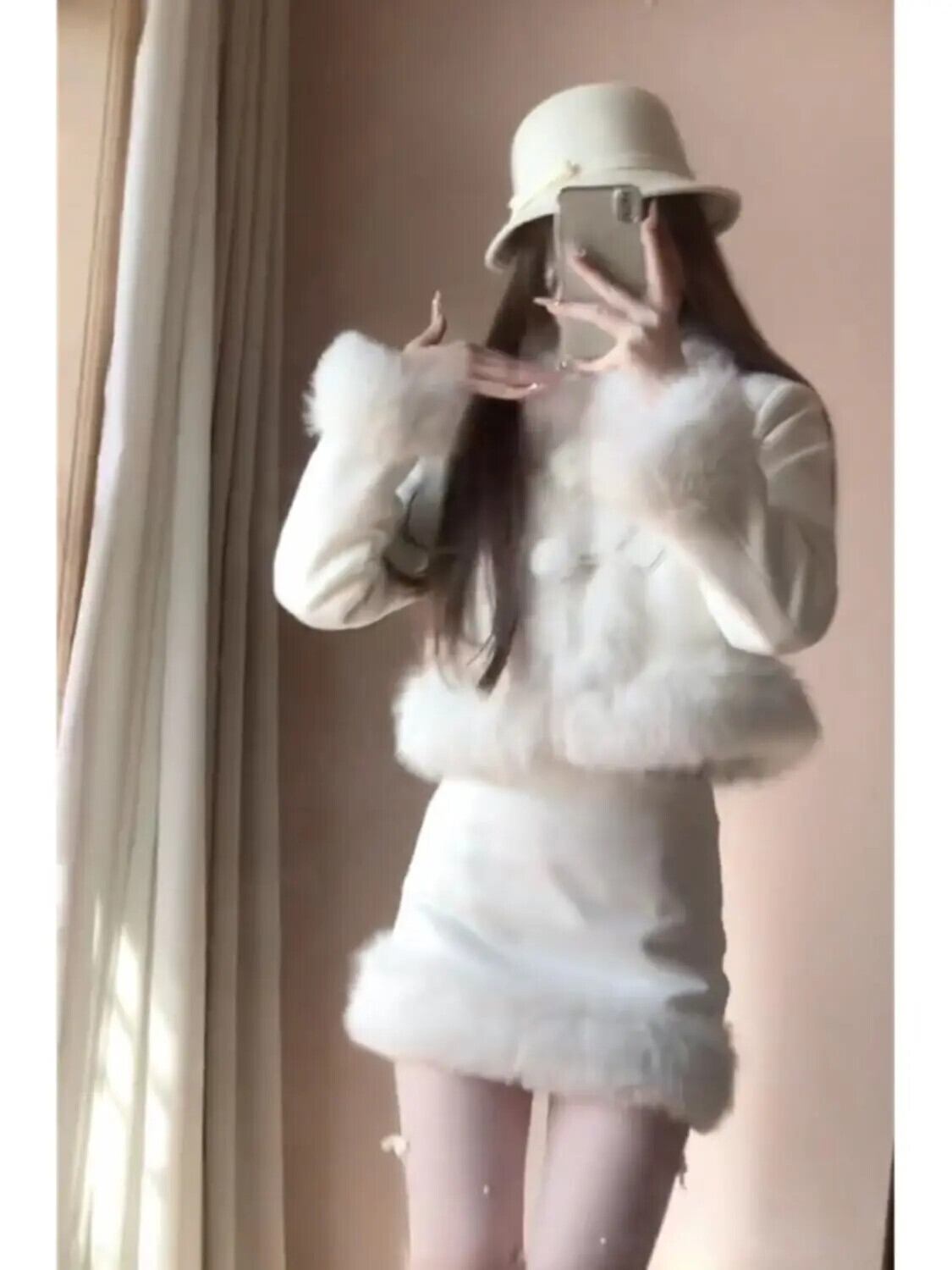 甘いホットガールスーツ秋/冬スエードパッチワークジャケットウエストヒップラップスカートツーピースセット スウェード 大人ガーリー スウィート キュート カジュアル オータム 秋物 ウィンター 冬物