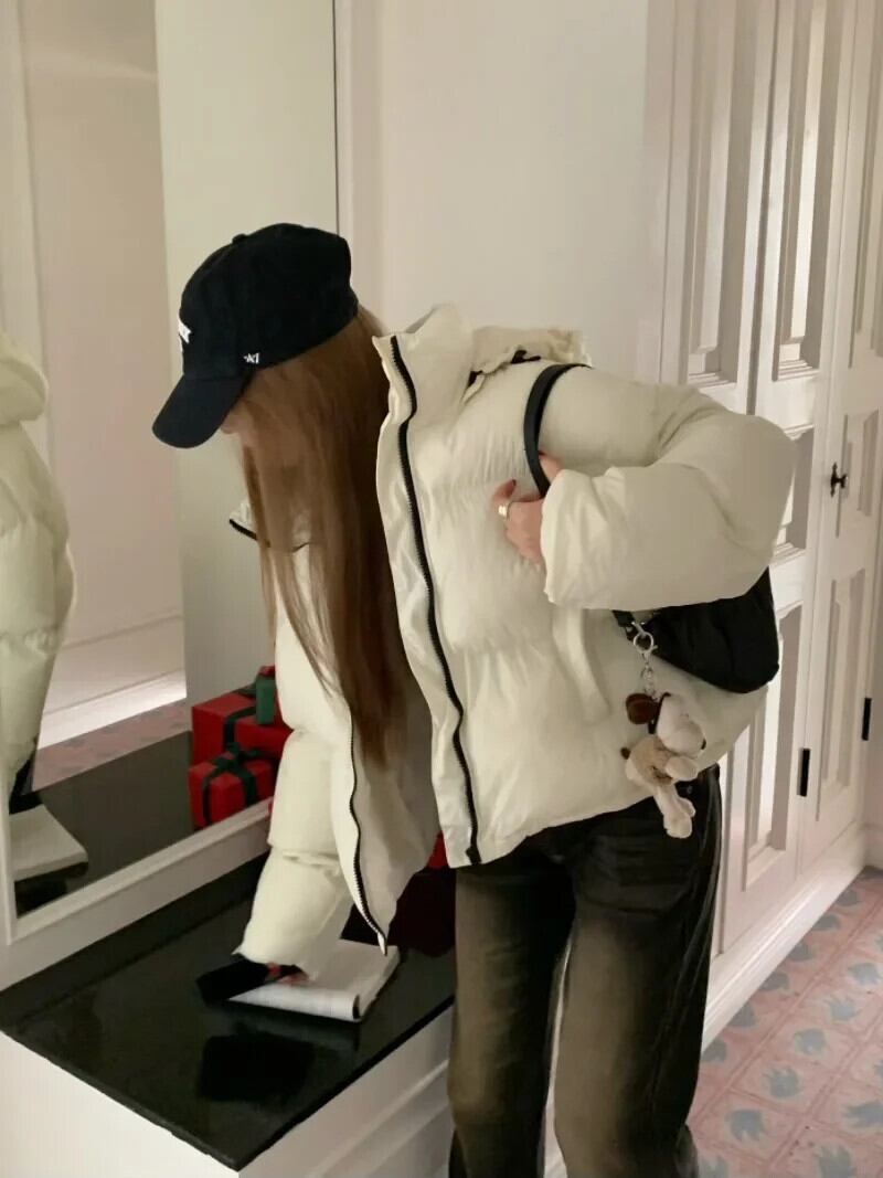 甘いホットガール肥厚暖かい綿ジャケット冬スタンドカラーフード付きルーズコットンジャケット 大人ガーリー スウィート キュート カジュアル ウィンター 冬物