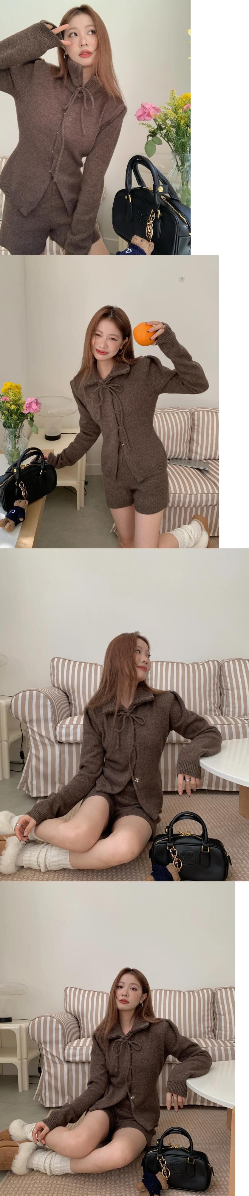 メイラードスタイルホットガールスーツ秋と冬レースアップカーディガンウエストショーツツーピースセット オータム 秋物 ウィンター 冬物 ブルマー