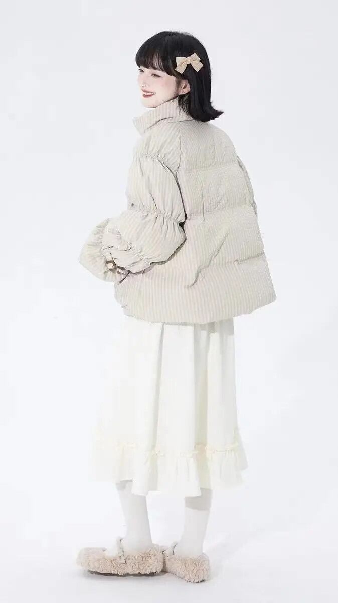 甘いホットガール巾着ホワイトダックダウンジャケット冬ポケット緩い肥厚チェック柄ジャケット 大人ガーリー スウィート キュート カジュアル ウィンター 冬物