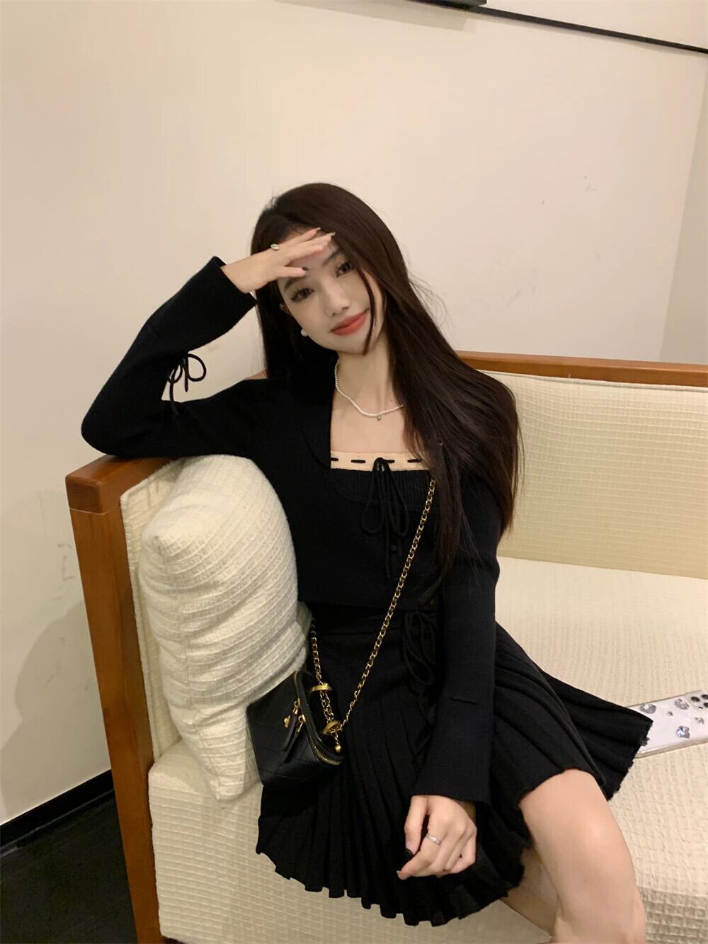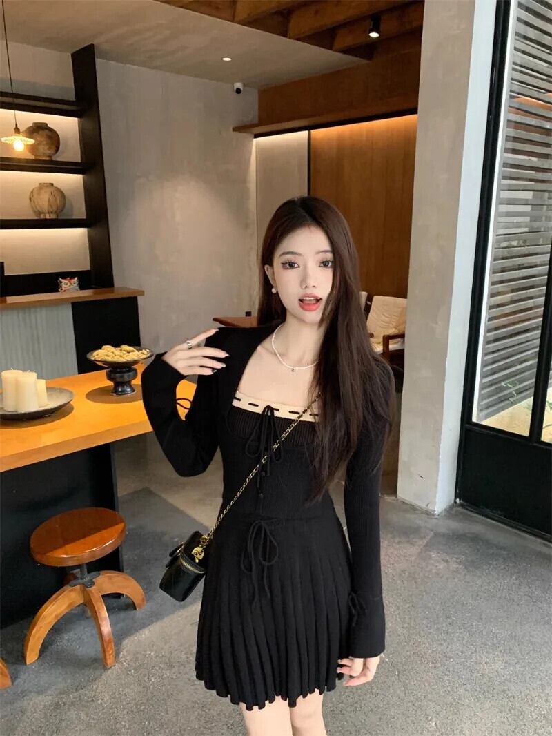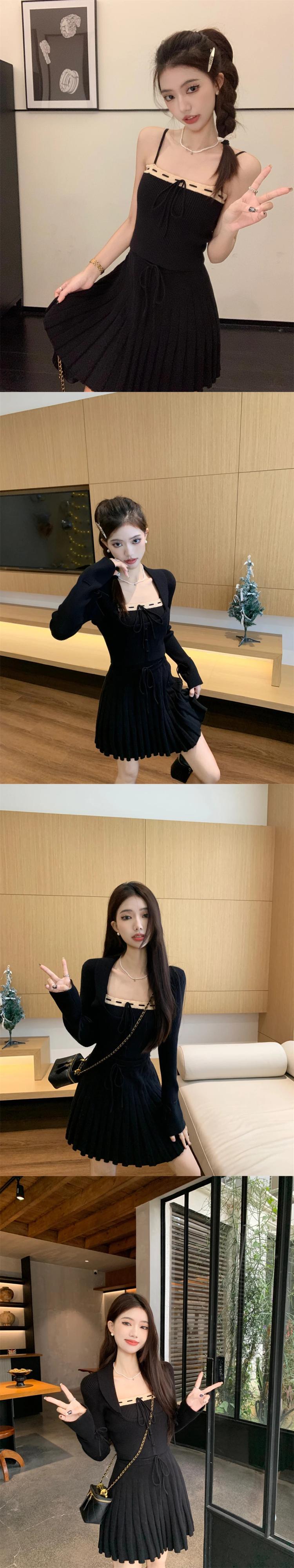 French Sweet Girl スーツ レディース 冬 レッド ニット カーディガン キャミソール Aライン ミニスカート 3点セット 大人ガーリー スウィート キュート カジュアル ウィンター 冬物