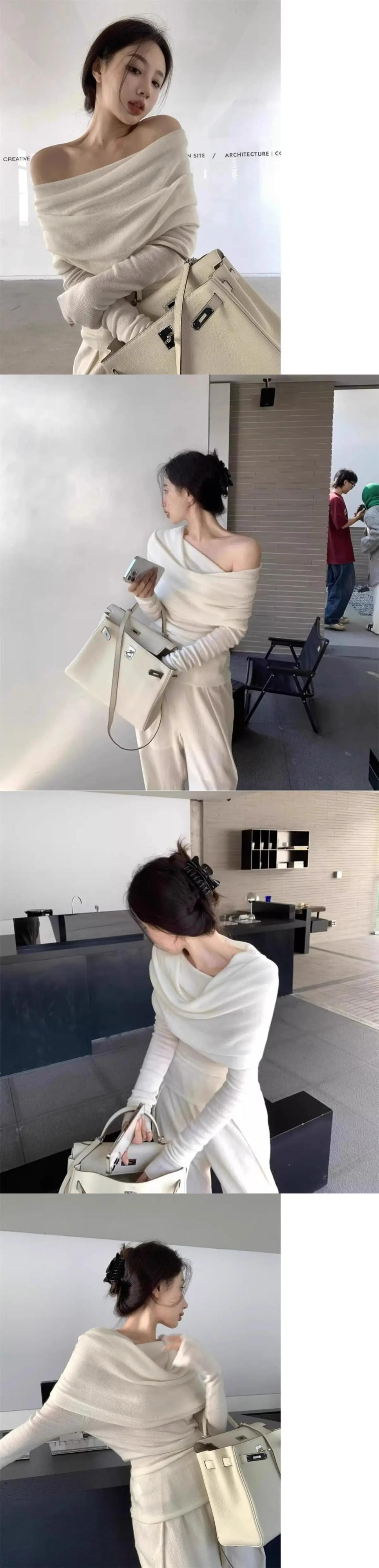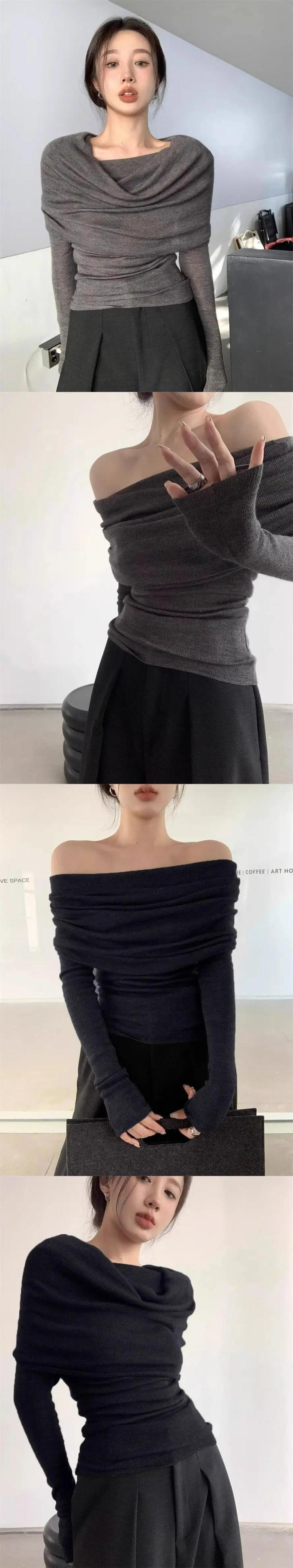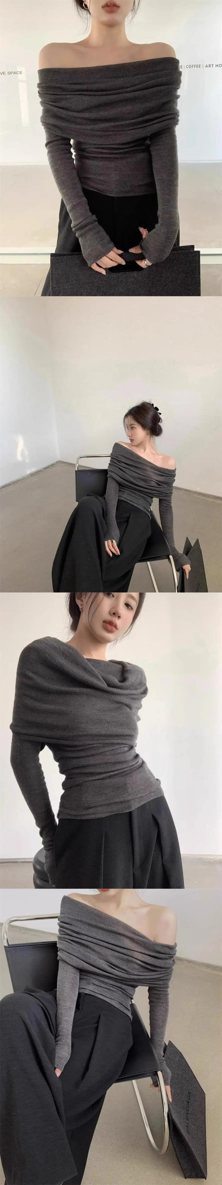 甘いホットガールオフショルダーセーター秋スラッシュネック長袖ニットボトリングシャツ ロング 大人ガーリー スウィート キュート カジュアル オータム 秋物