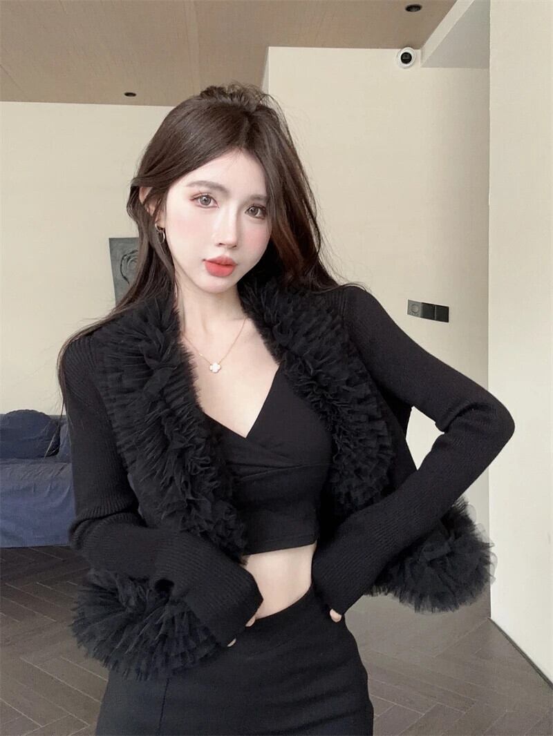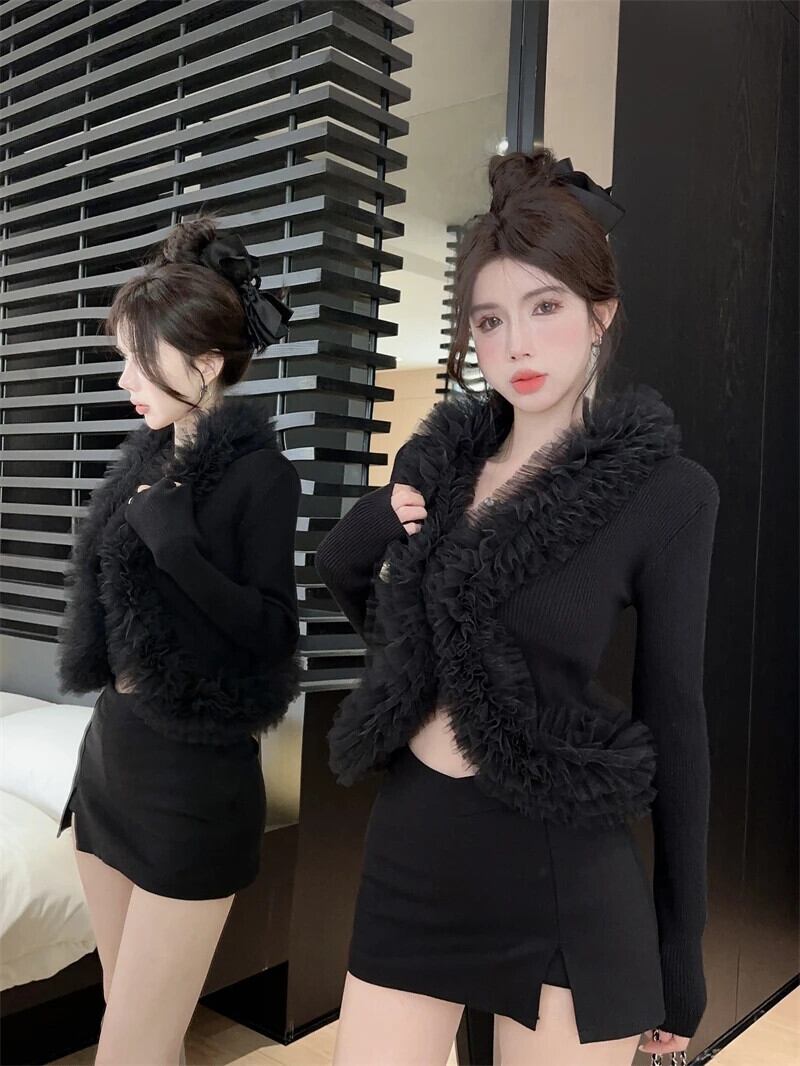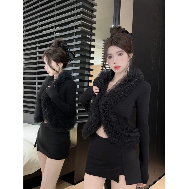 甘いホットガール純粋セクシー V ネックセータートップ冬フレア袖スリムフィットニットカーディガンファッション フレアスリーブ 大人ガーリー スウィート キュート カジュアル ウィンター 冬物 Vネック ピュア
