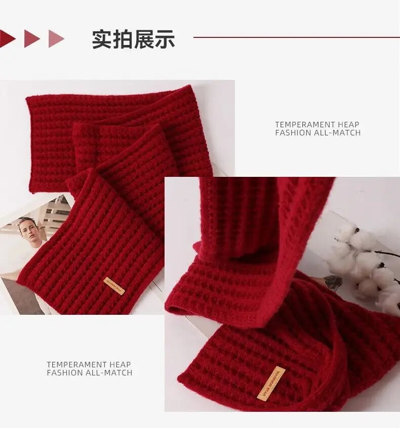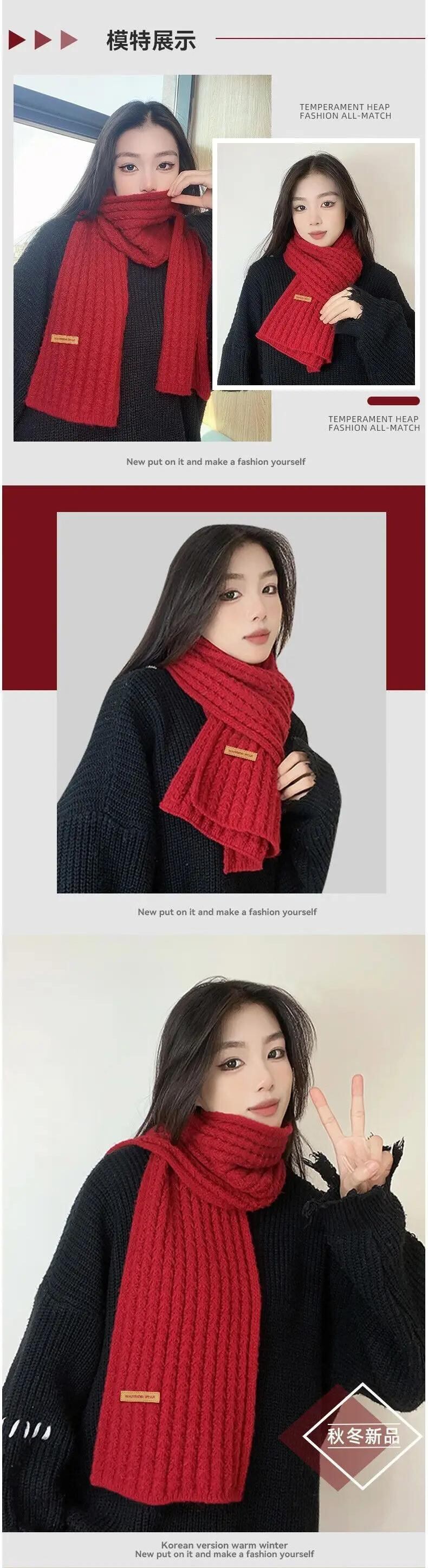 Sweet Hot Girl 赤暖かいニットスカーフ秋と冬プレッピースタイルスカーフトレンディアクセサリー レッド 大人ガーリー スウィート キュート カジュアル オータム 秋物 ウィンター 冬物