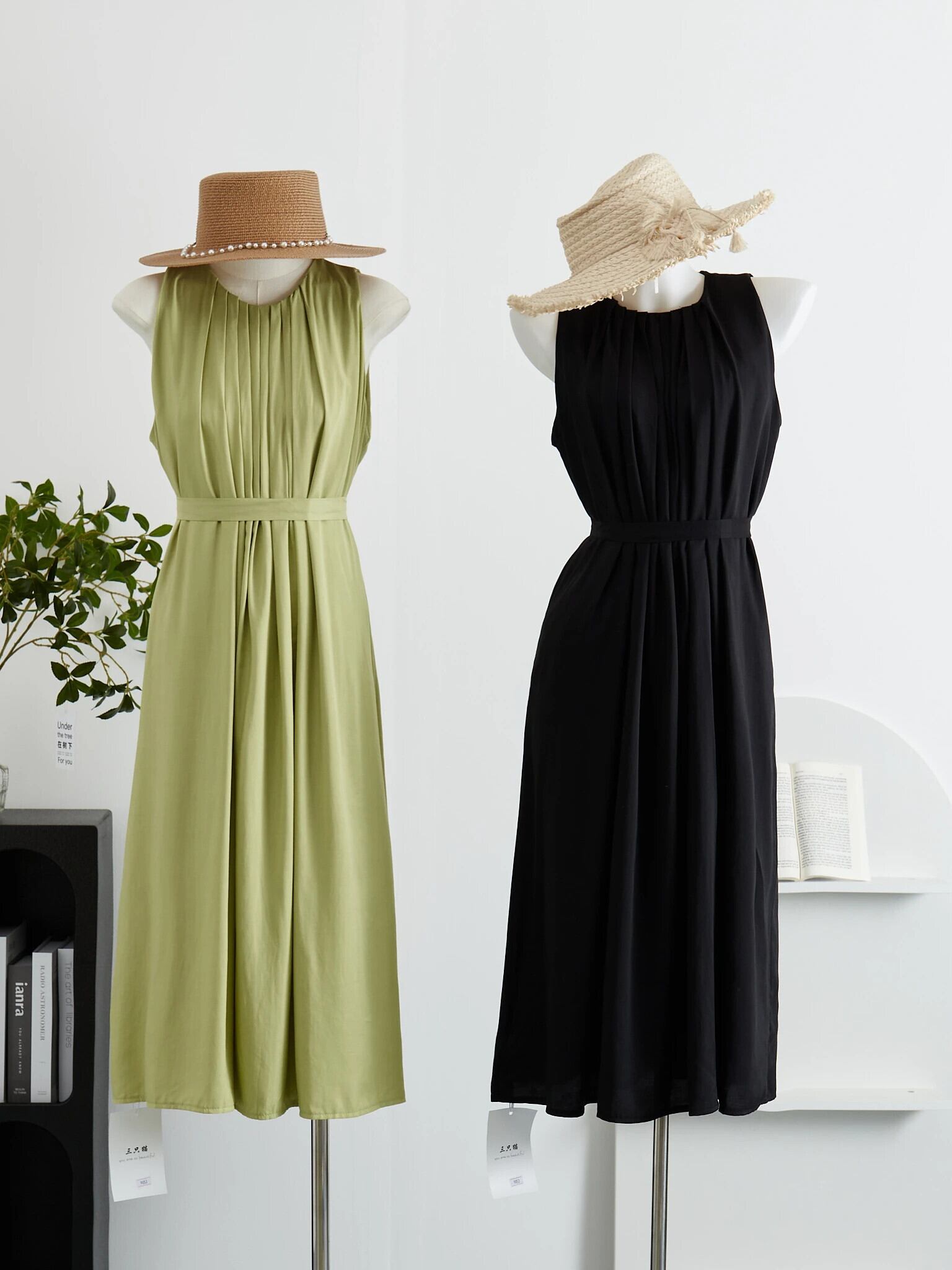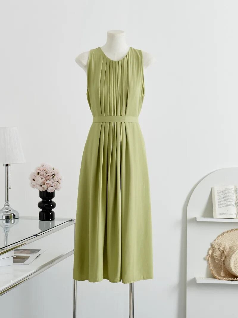 甘いホットガールホリデースタイルプリーツドレス夏ルーズフレンチ大き裾ノースリーブソリッドカラードレス 大人ガーリー スウィート キュート カジュアル サマー 夏物
