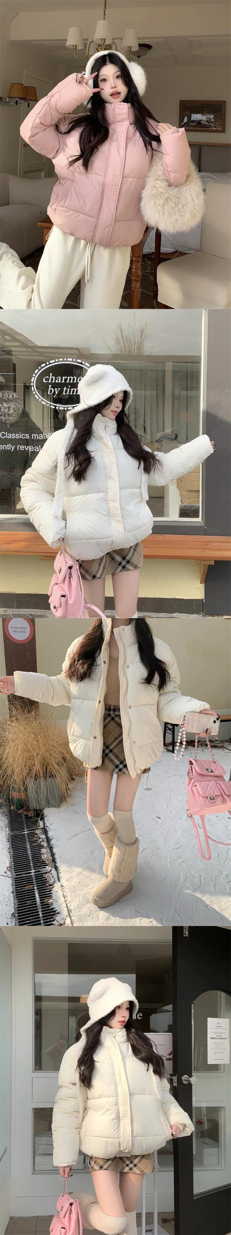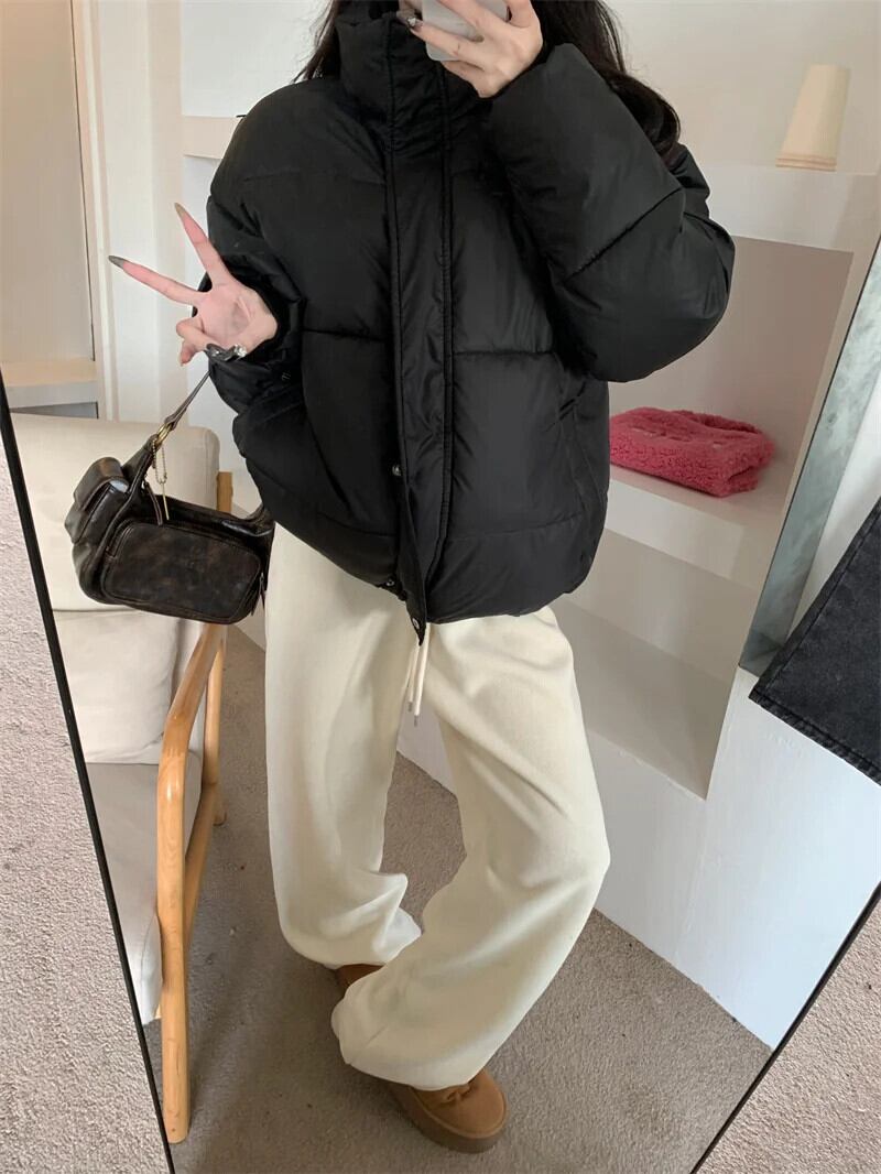 Sweet Girl ソリッドスタンドカラー肥厚コットンコート冬ルーズ長袖パンコート ロング 大人ガーリー スウィート キュート カジュアル ウィンター 冬物 ソリッドカラー