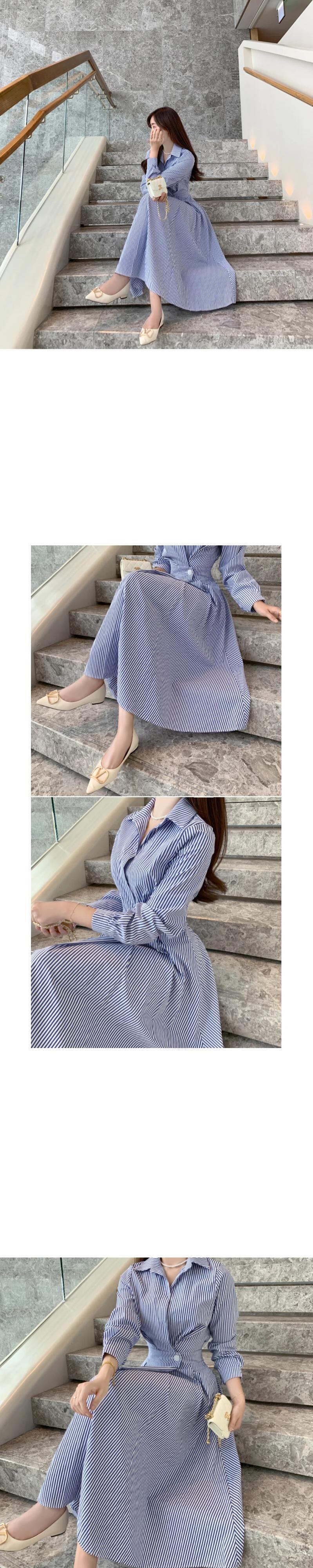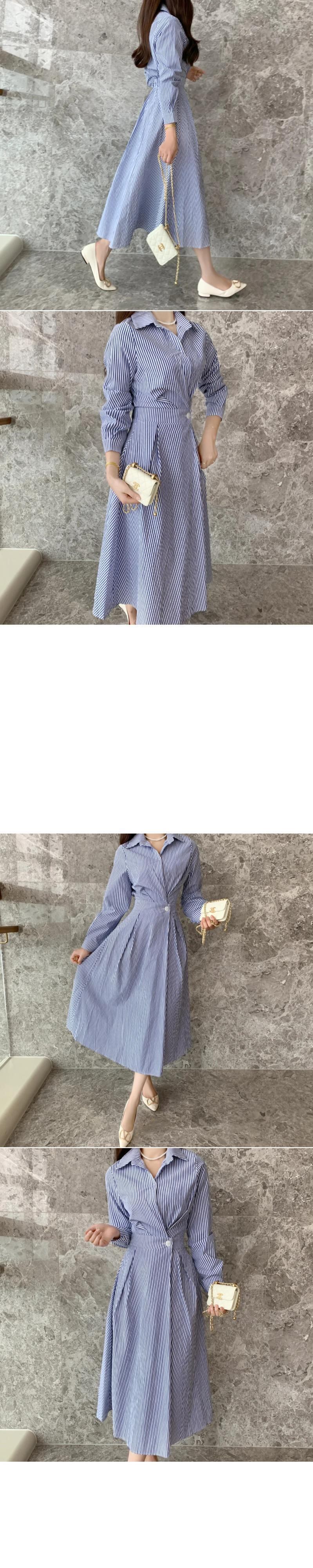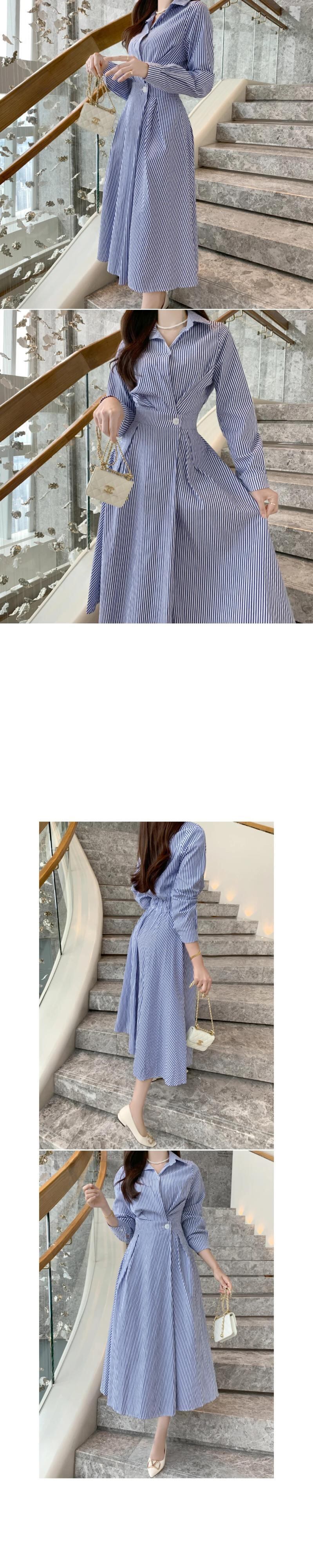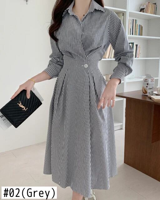 甘いホットガールシックドレス春/夏ターンダウン襟 1 つボタンストライプ A ラインドレス 大人ガーリー スウィート キュート カジュアル スプリング 春物 サマー 夏物 Aライン