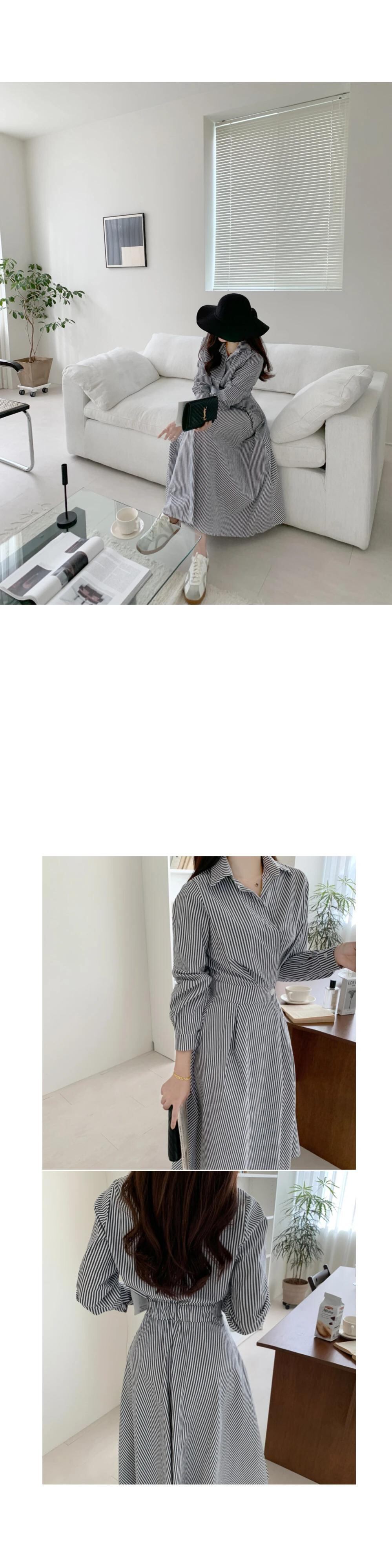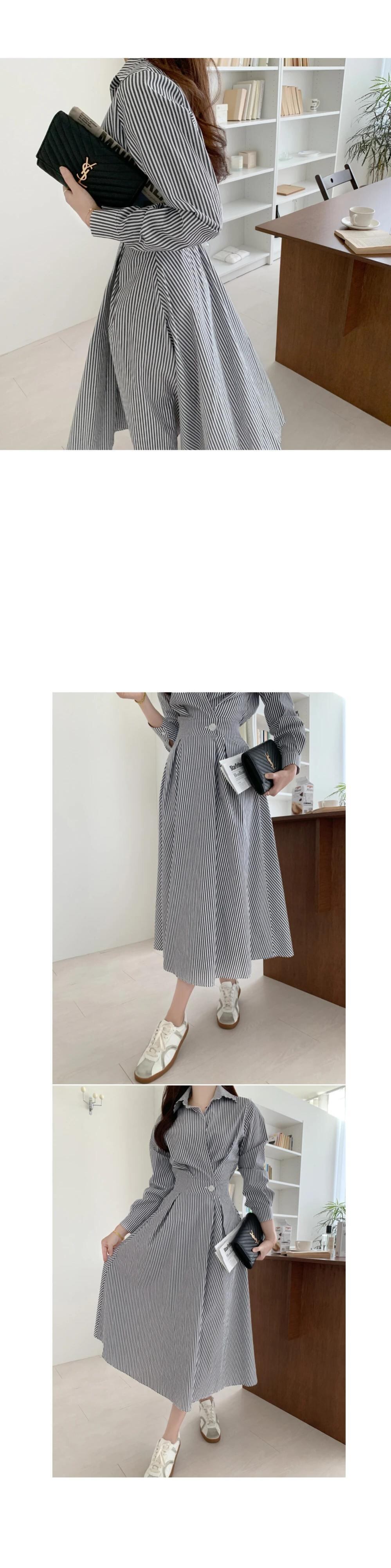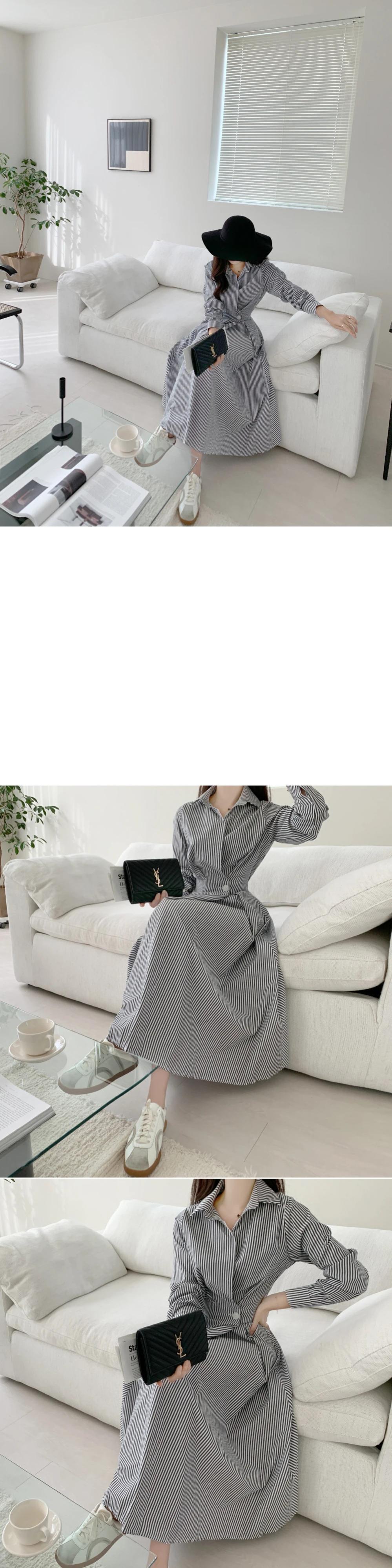 甘いホットガールシックドレス春/夏ターンダウン襟 1 つボタンストライプ A ラインドレス 大人ガーリー スウィート キュート カジュアル スプリング 春物 サマー 夏物 Aライン