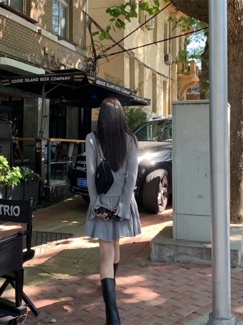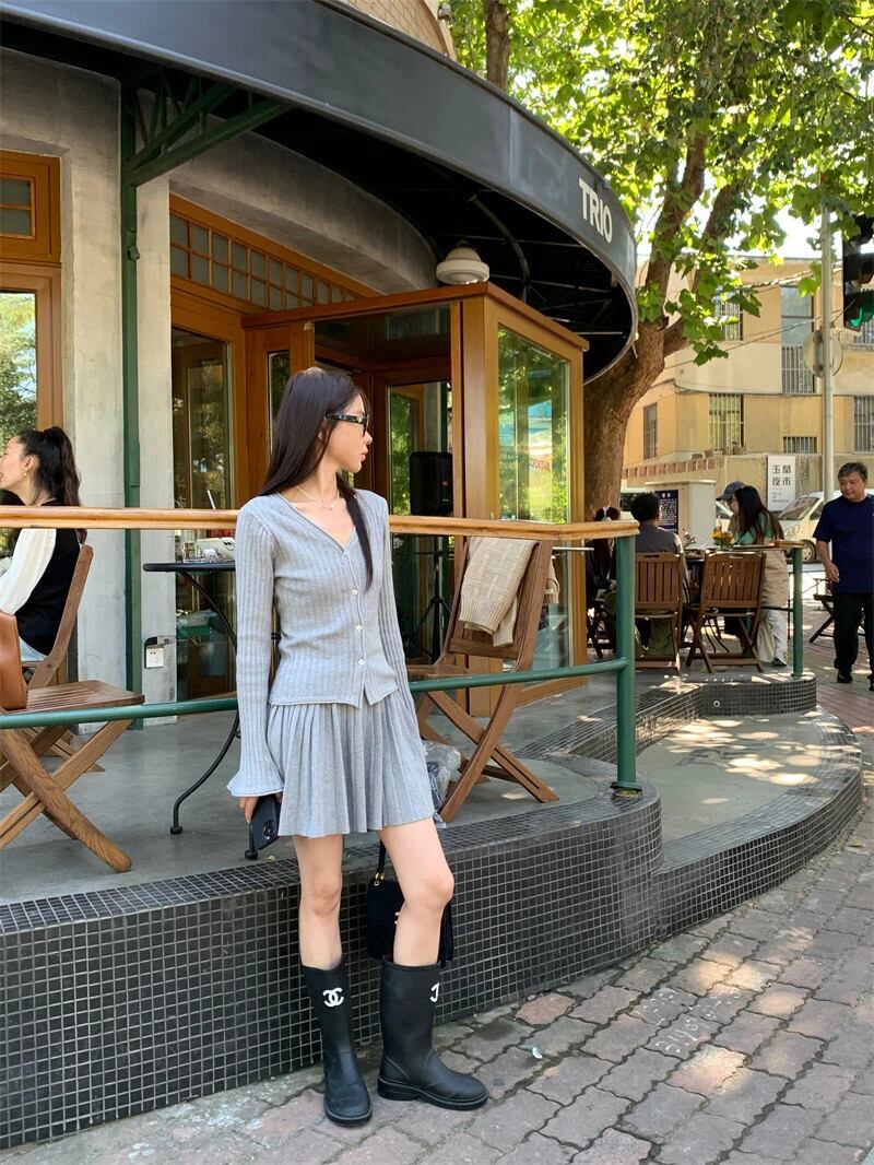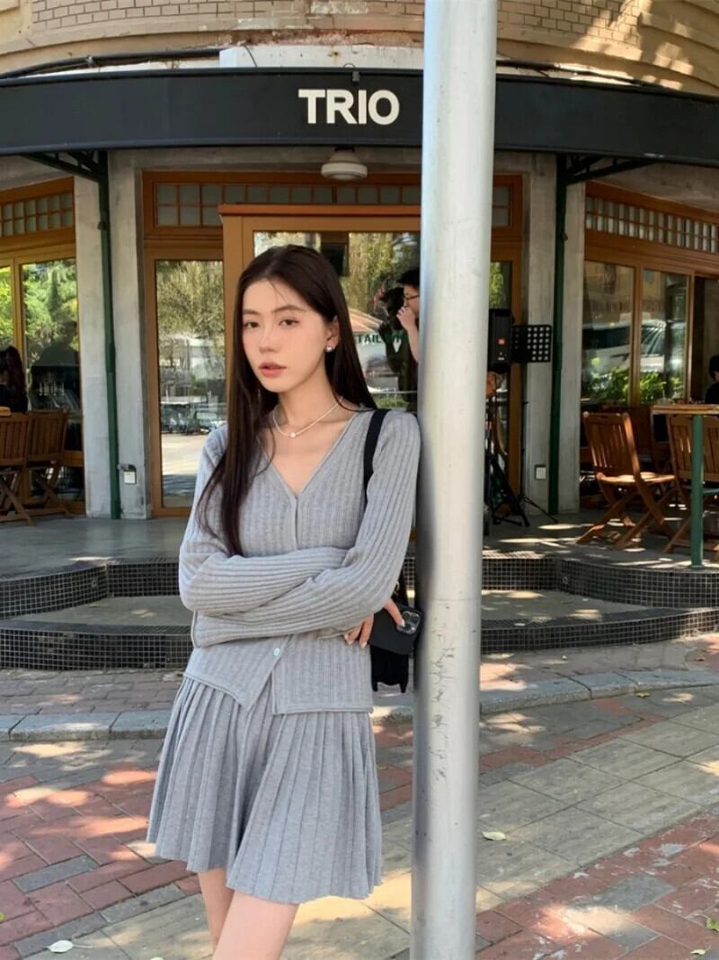スイートホットガールスーツ レディース 春 ソリッドカラー Vネック ニットジャケット ウエスト Aライン プリーツ ミニスカート 2点セット 大人ガーリー スウィート キュート カジュアル スプリング 春物