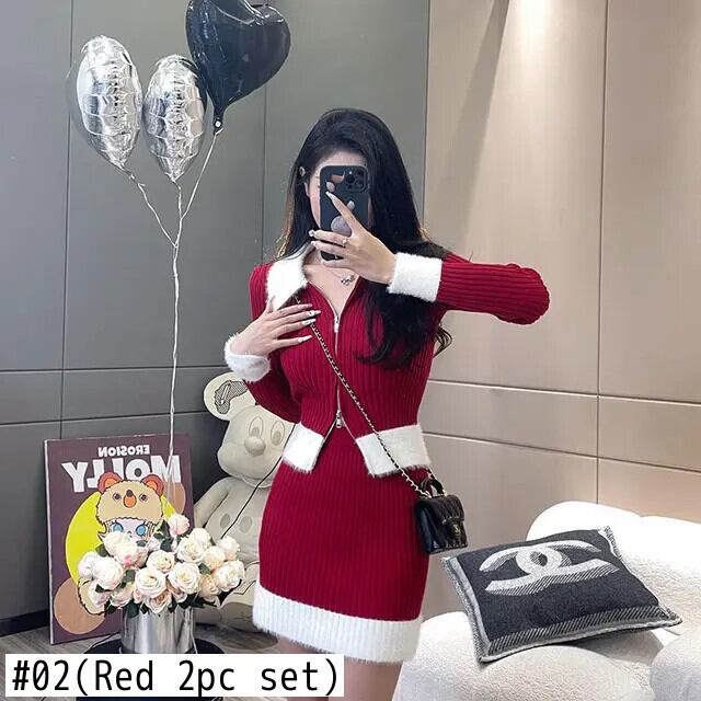 甘いホットガールスーツ秋と冬セクシースリムフィットショートニットカーディガンお尻ラップスカートツーピースセット 大人ガーリー スウィート キュート カジュアル オータム 秋物 ウィンター 冬物